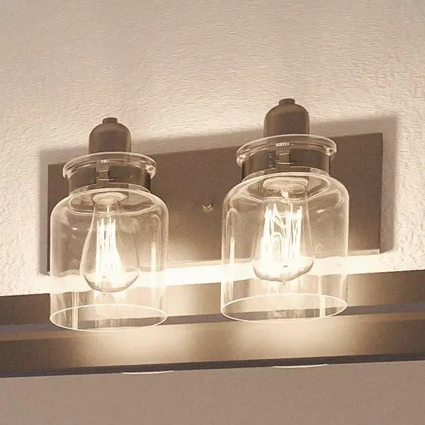 Endowed with a full backplate, lighting fixtures in the Bridgeport family deliver a stunning backdrop to highlight a vintage glow. The clean design includes double arms that horizontally project out from the lustrous backplate. The top arm drops a dome-like socket into the glass, whereas the lower arm leads into an industrial-style latch that covers the mouth of the oversized clear glass jar.Below the latch grip, the jar widens into a cylinder shade with a hollow base. Adding a symmetrical bulging vintage bulb adds to the classic delight all the more, and this neat alignment yields enhanced illumination and visual interest.Available in Olde Bronze and Brushed Nickel as different bath light configurations.