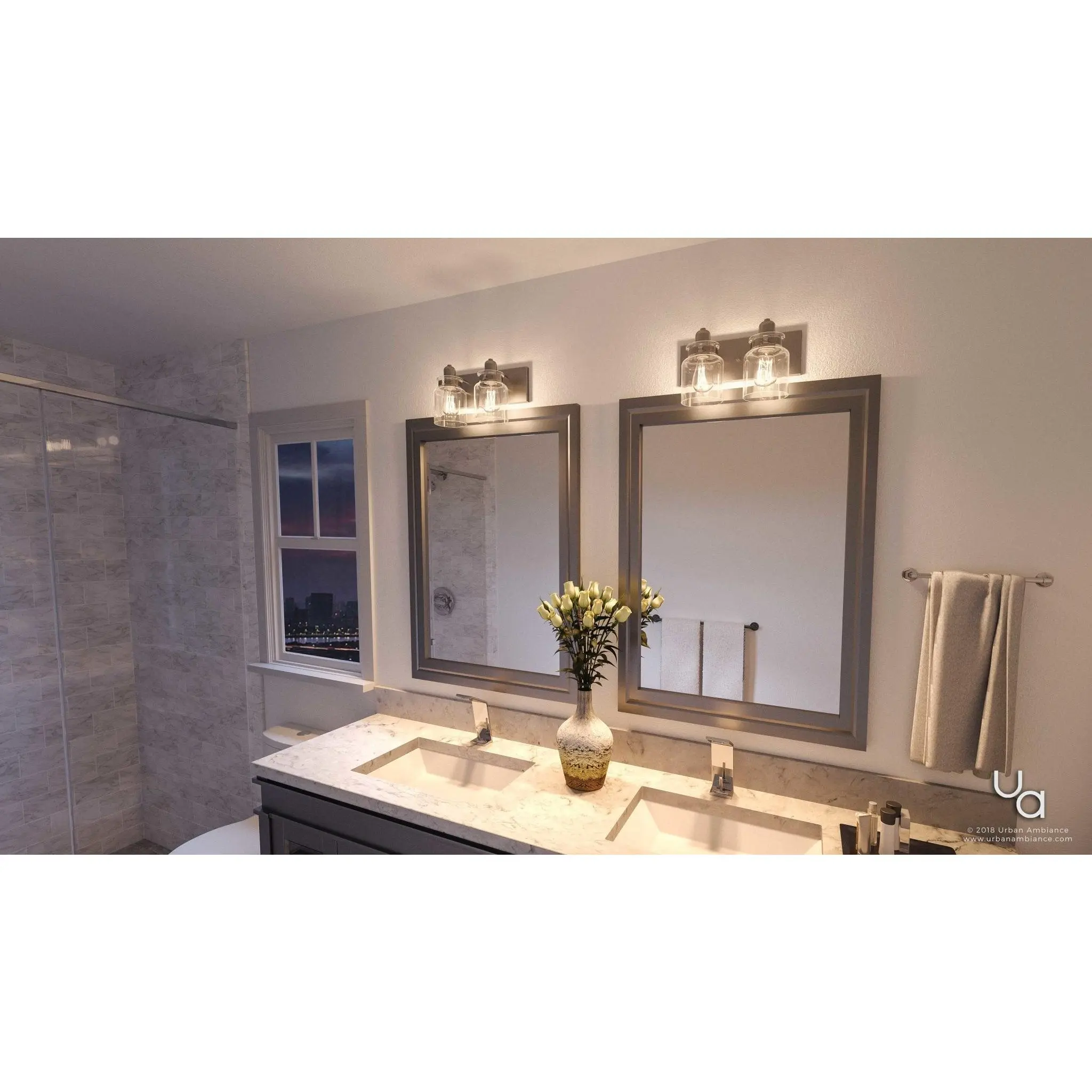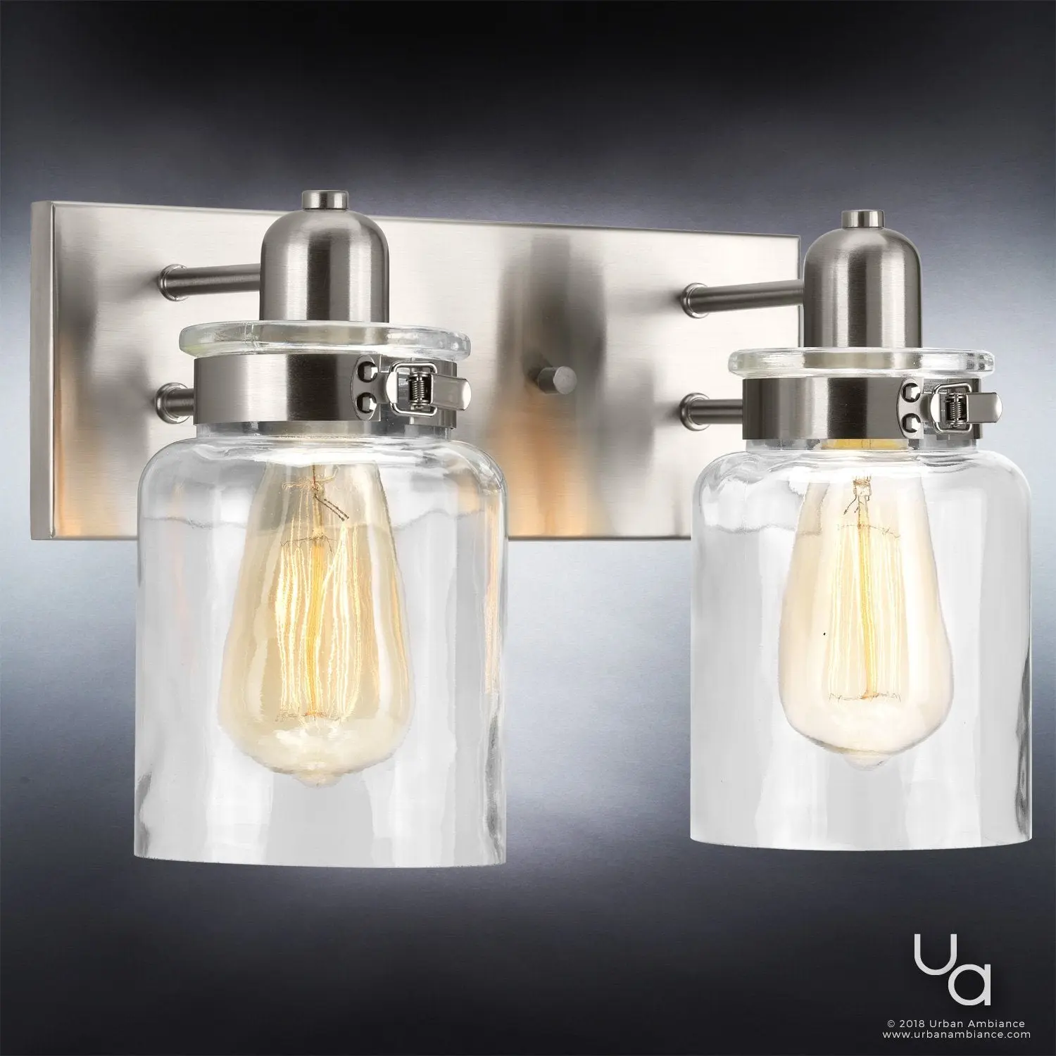The UHP2140 evlolves everyday routines into moments of refined elegance, where oversized clear glass jars catch morning light like captured sunshine. While competitors offer predictable cylinder shades, this Bridgeport fixture's industrial latch and dual-arm architecture create visual intrigue that mass-market options simply cannot match. Its steel construction and lustrous backplate outlast flimsy alternatives, while the reversible mounting and warm, omni-directional glow adapt beautifully to evolving bathroom designs—all protected by Urban Ambiance's celebrated warranty.