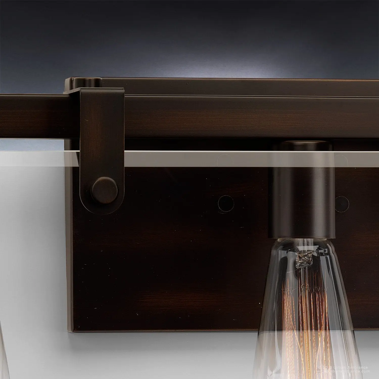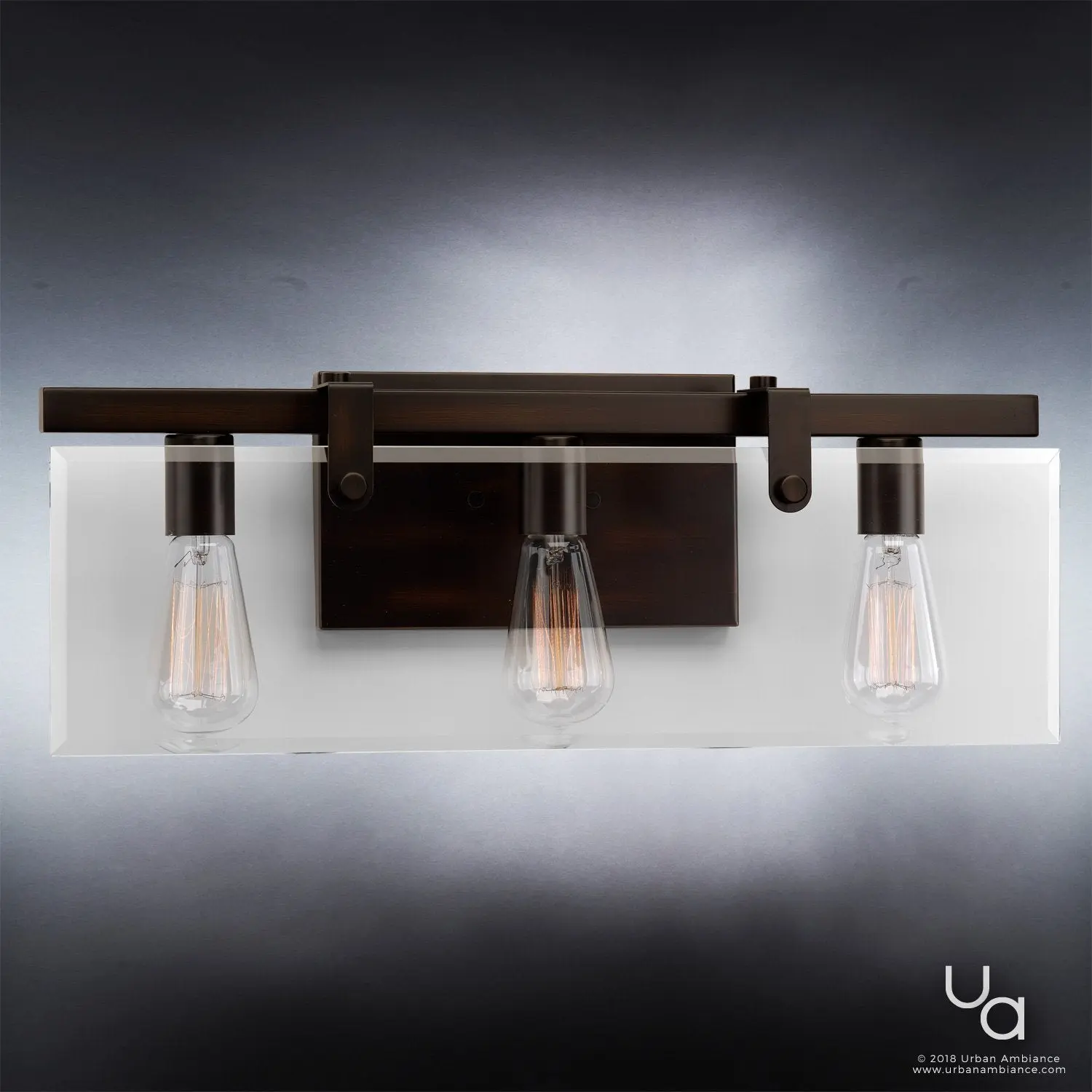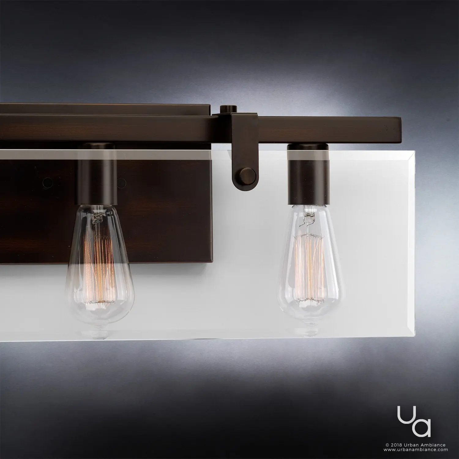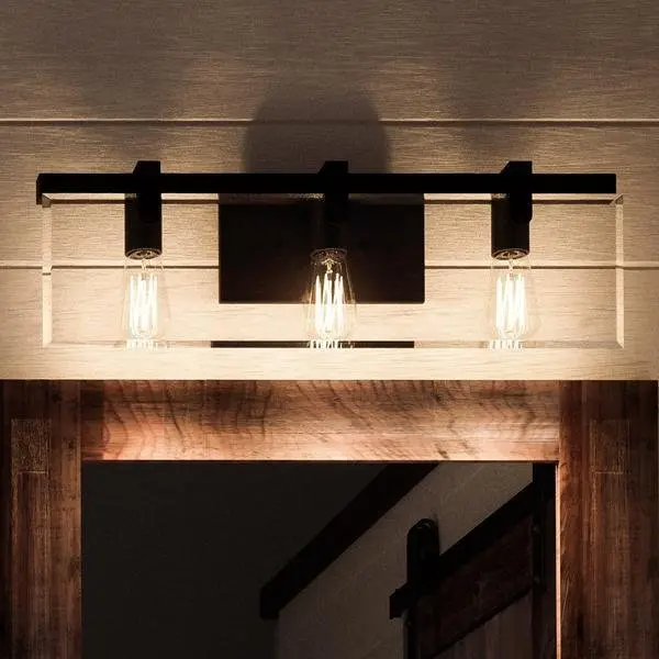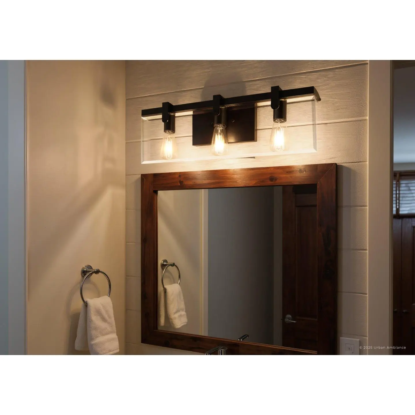 The UHP2450 creates a refined architectural presence with its square-armed frame that directly supports beveled glass panes—avoiding bulky framing seen in many bath lights. Its Olde Bronze finish adds depth and warmth, contrasting with standard polished or brushed metals. The craftsmanship highlights an industrial-meets-modern farmhouse influence, evoking hand-forged precision. With omni-directional illumination and exposed bulbs, it delivers a luminous, textured glow that feels both contemporary and timeless compared to more conventional fixtures.