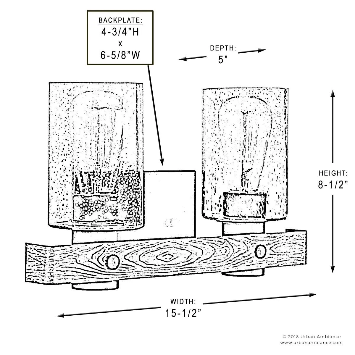 ·FIXTURE BODY: 8-1/2"H x 15-1/2"W x 5"Dep