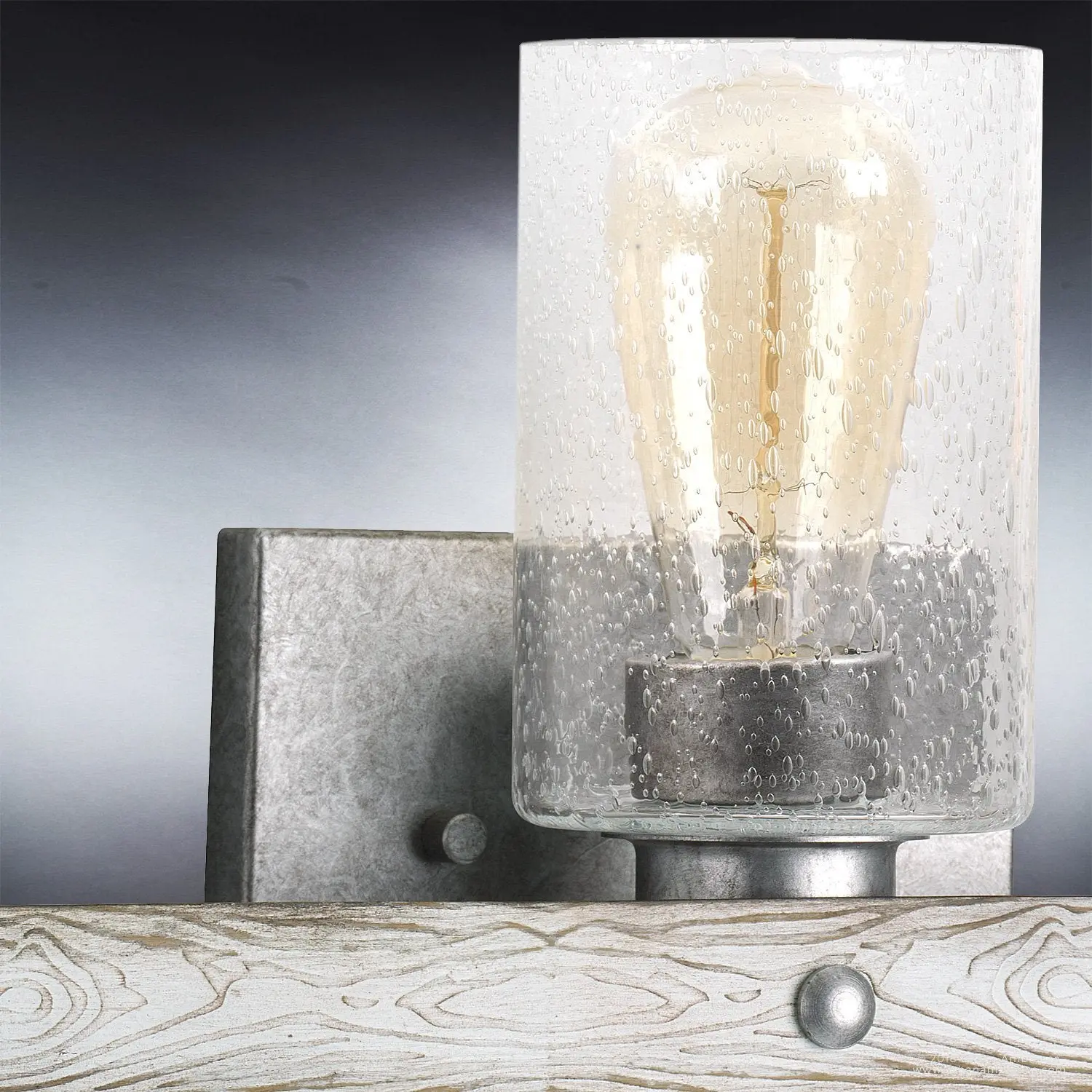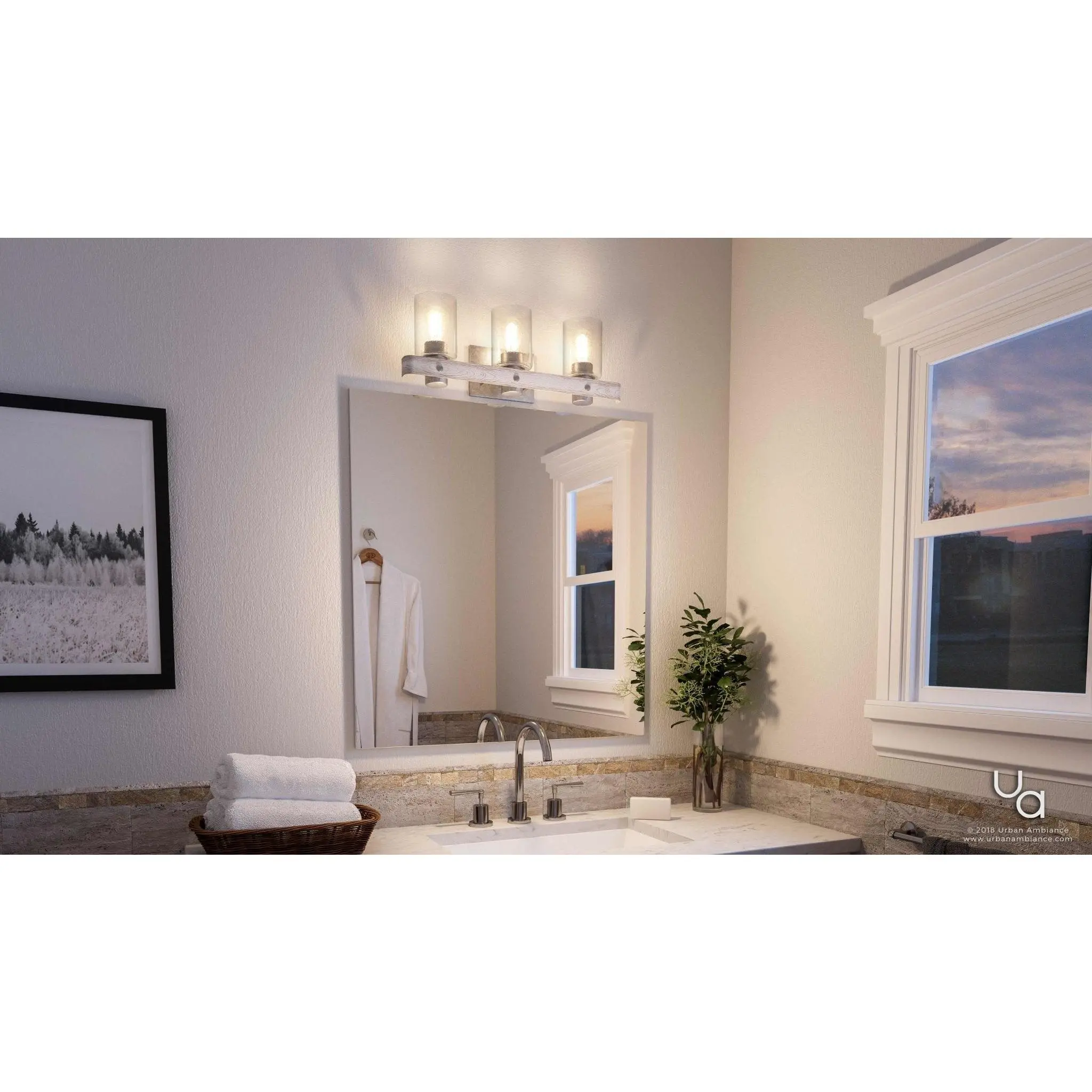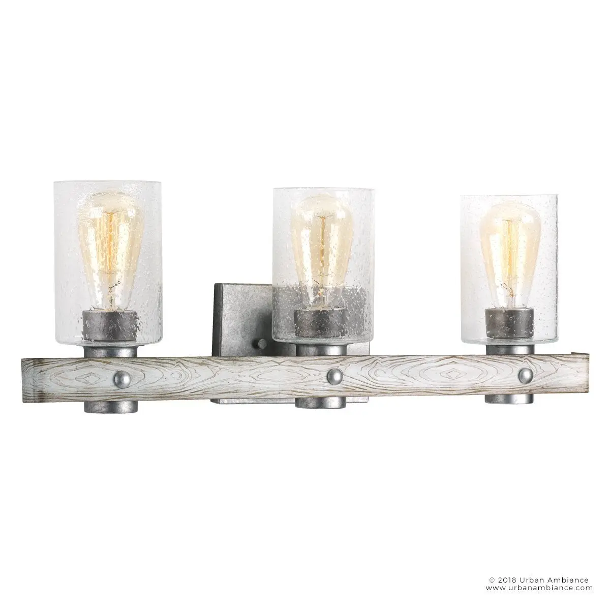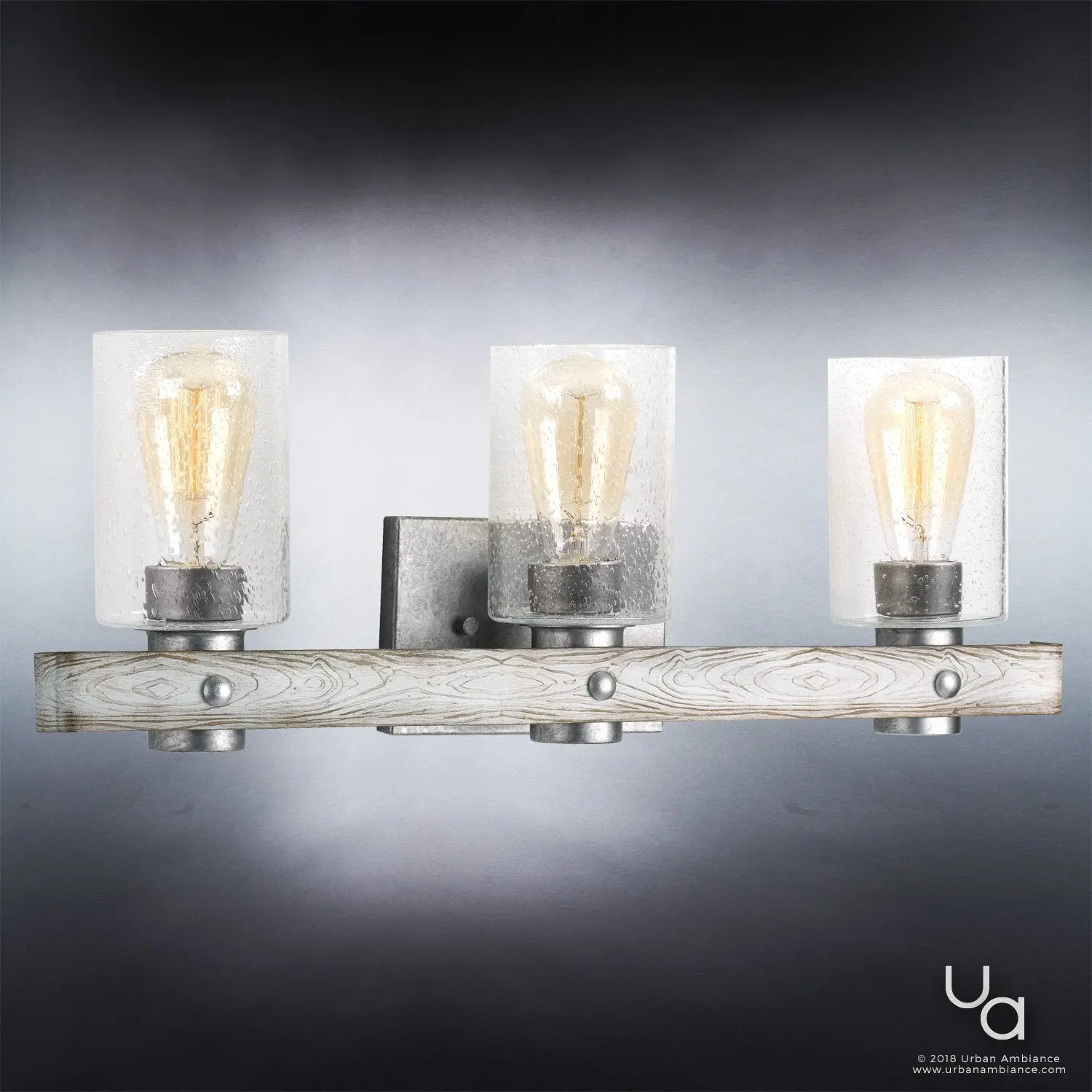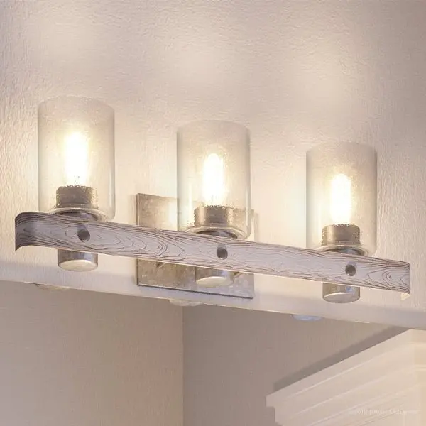 The UHP2485 brings a distinctive architectural flair with its open cage framework and layered circular bands, giving it a sculptural, farmhouse-meets-modern aesthetic not often seen in standard bath fixtures. Its galvanized steel finish introduces an industrial yet refined appeal, setting it apart from brushed nickel or chrome alternatives. Handcrafted detailing in the slatted ring design nods to artisanal construction, while the three exposed bulbs emit a warm, vintage-inspired glow that feels both rustic and inviting.