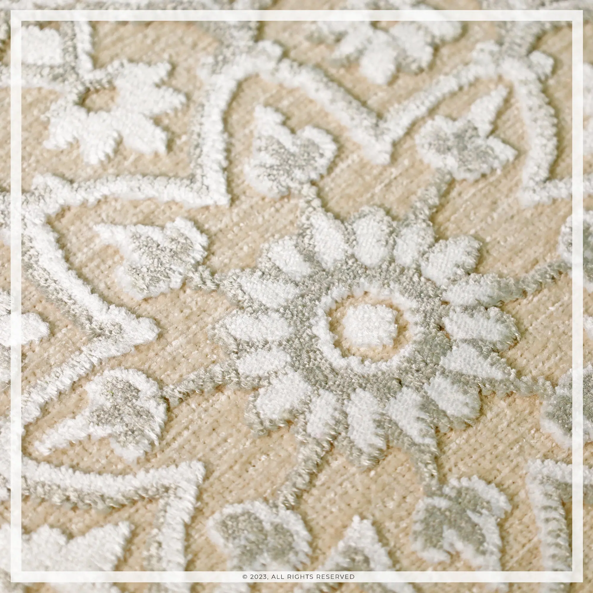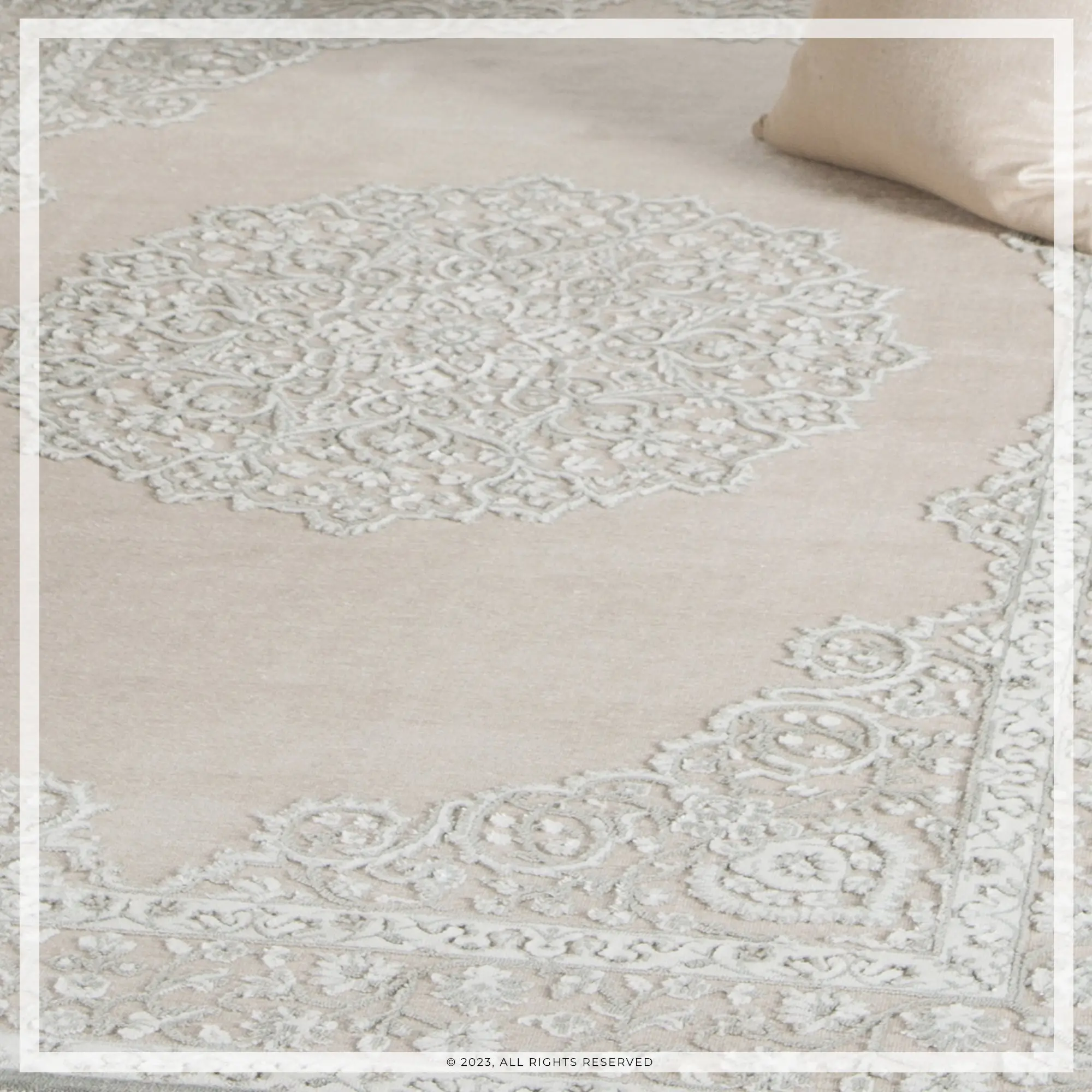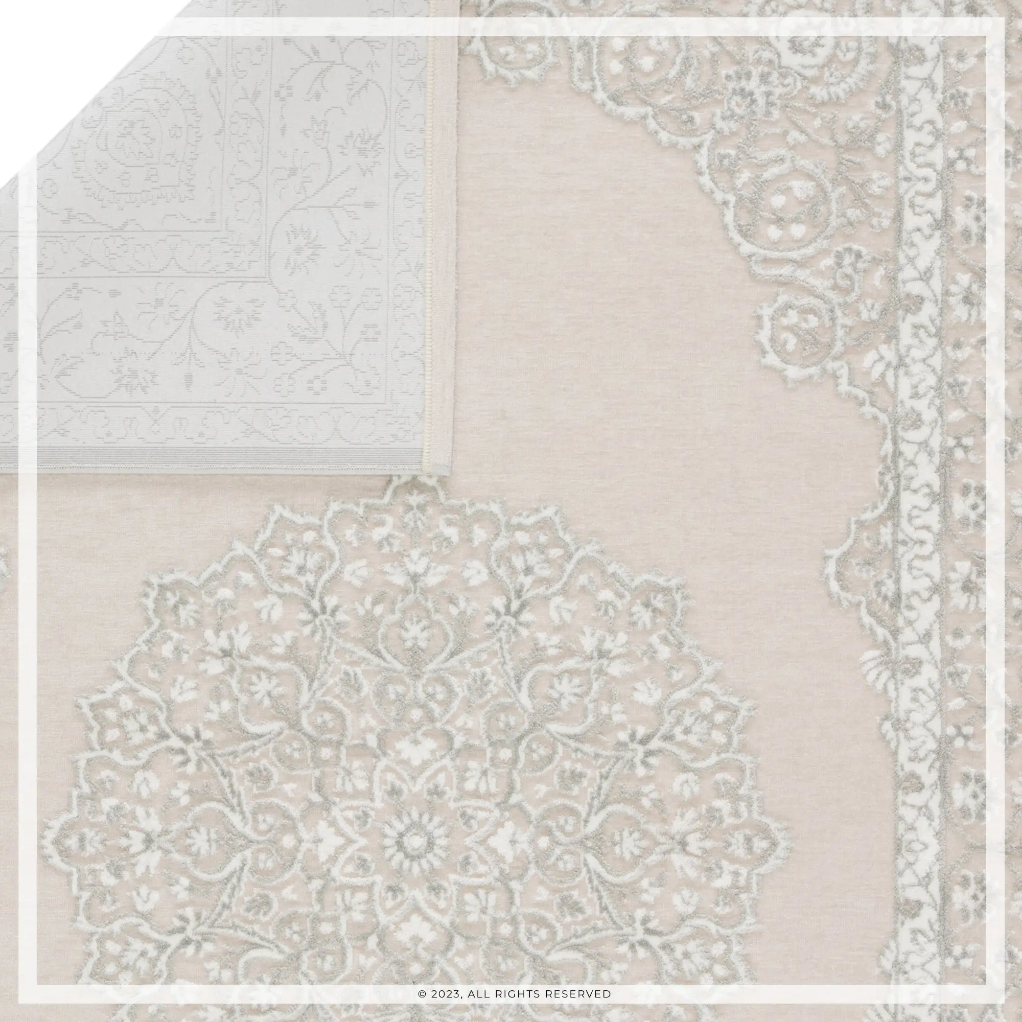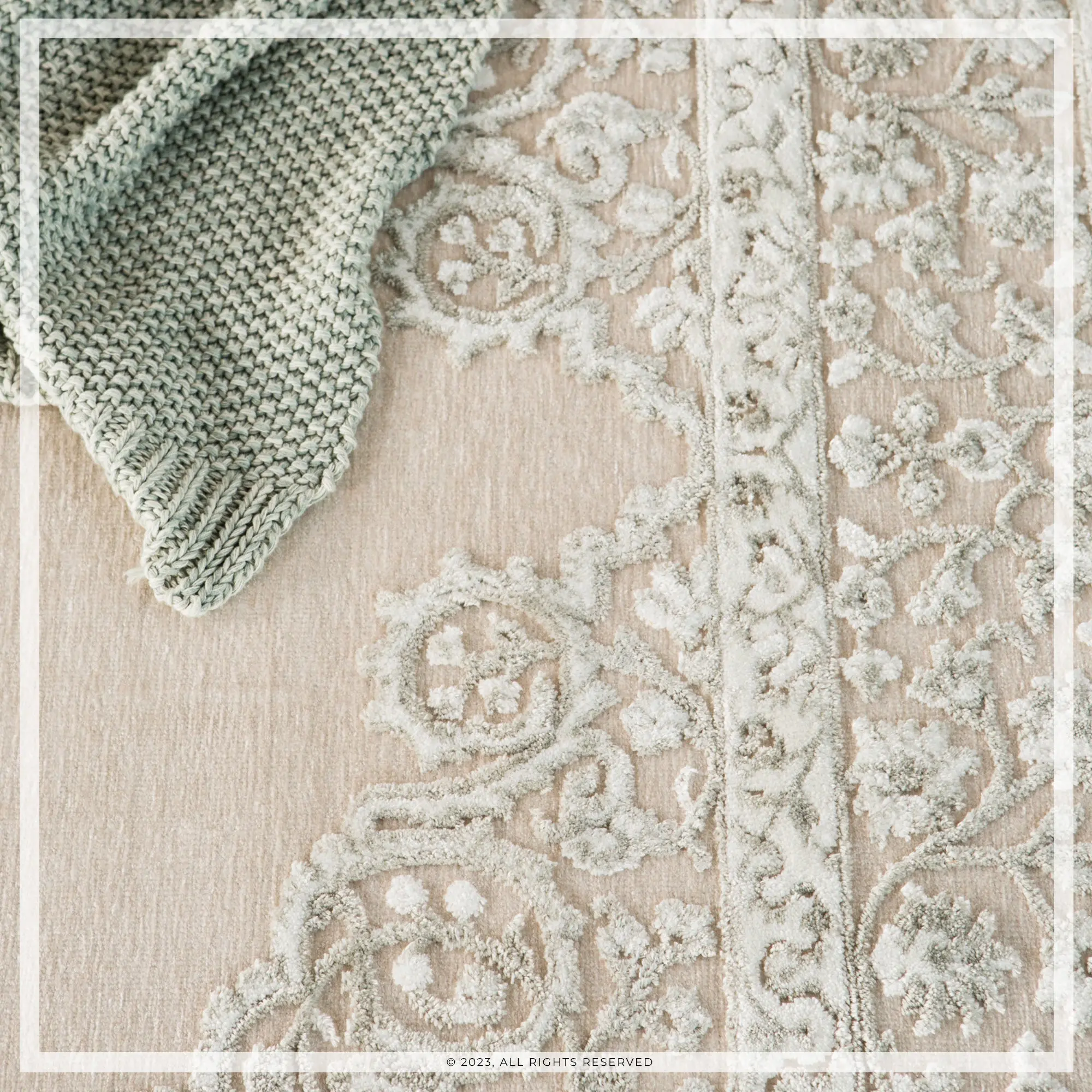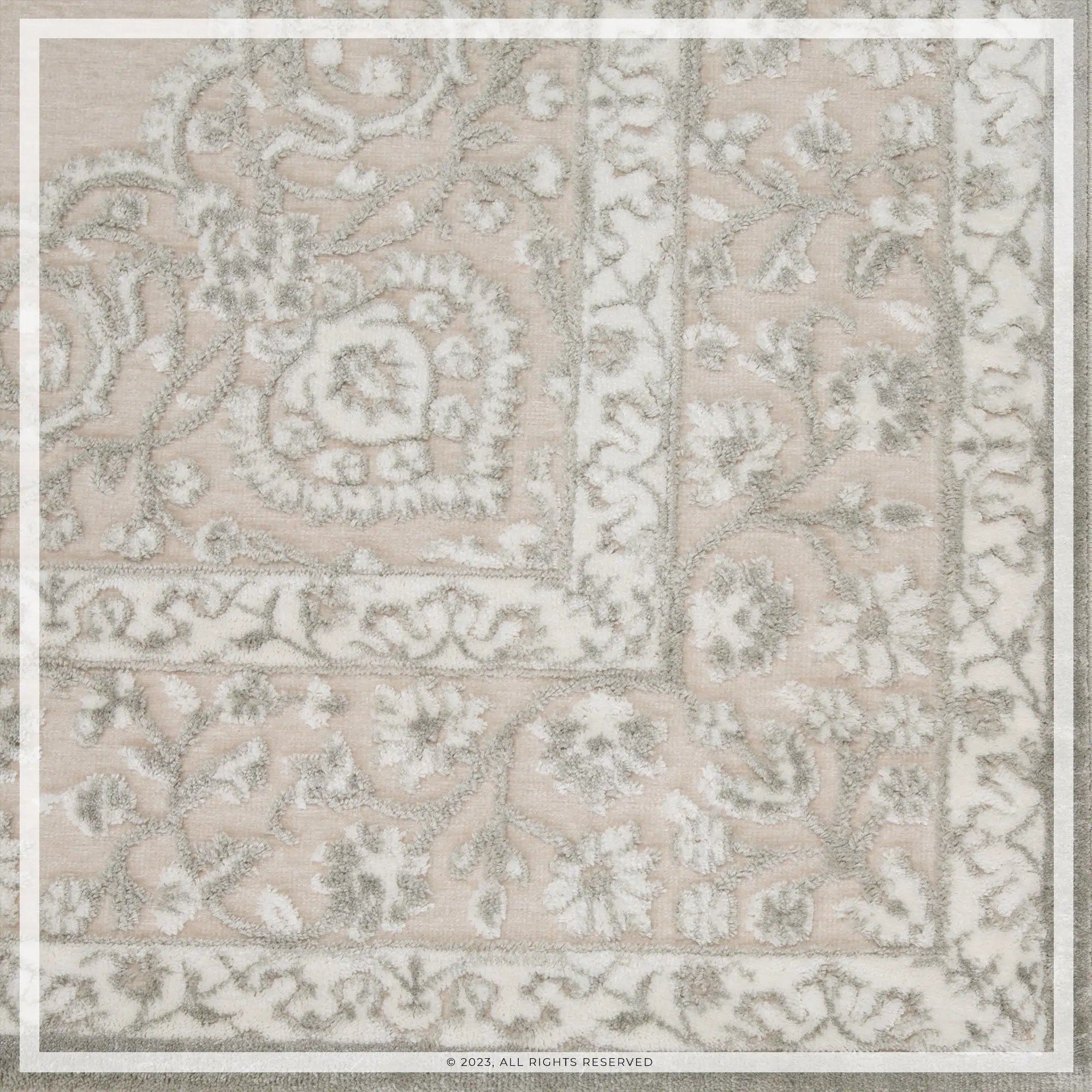 Immerse your space in the epitome of modern luxury with the Aprilia collection – a showcase of power-loomed precision and everyday opulence. Available in sizes 2X3, 3X8, 5X8, 8X10, 9X12, and 10X14, these rugs boast a high-low pile that invites a texture-rich experience into your home. Crafted from a blend of 59% acrylic, 32% rayon, and 9% polyester, this collection redefines affordable luxury.The Aprilia rugs come with either a white and beige colorway or chic gray and white color variations that unfolds in a sophisticated center medallion and scrolling border detail. The precision of power-loomed construction ensures a range of patterns, styles, and colors, making it a versatile addition to any space. Dive into everyday luxury with a lustrous finish that resonates with affordable elegance. The varied pile height adds depth, creating an inviting atmosphere underfoot.