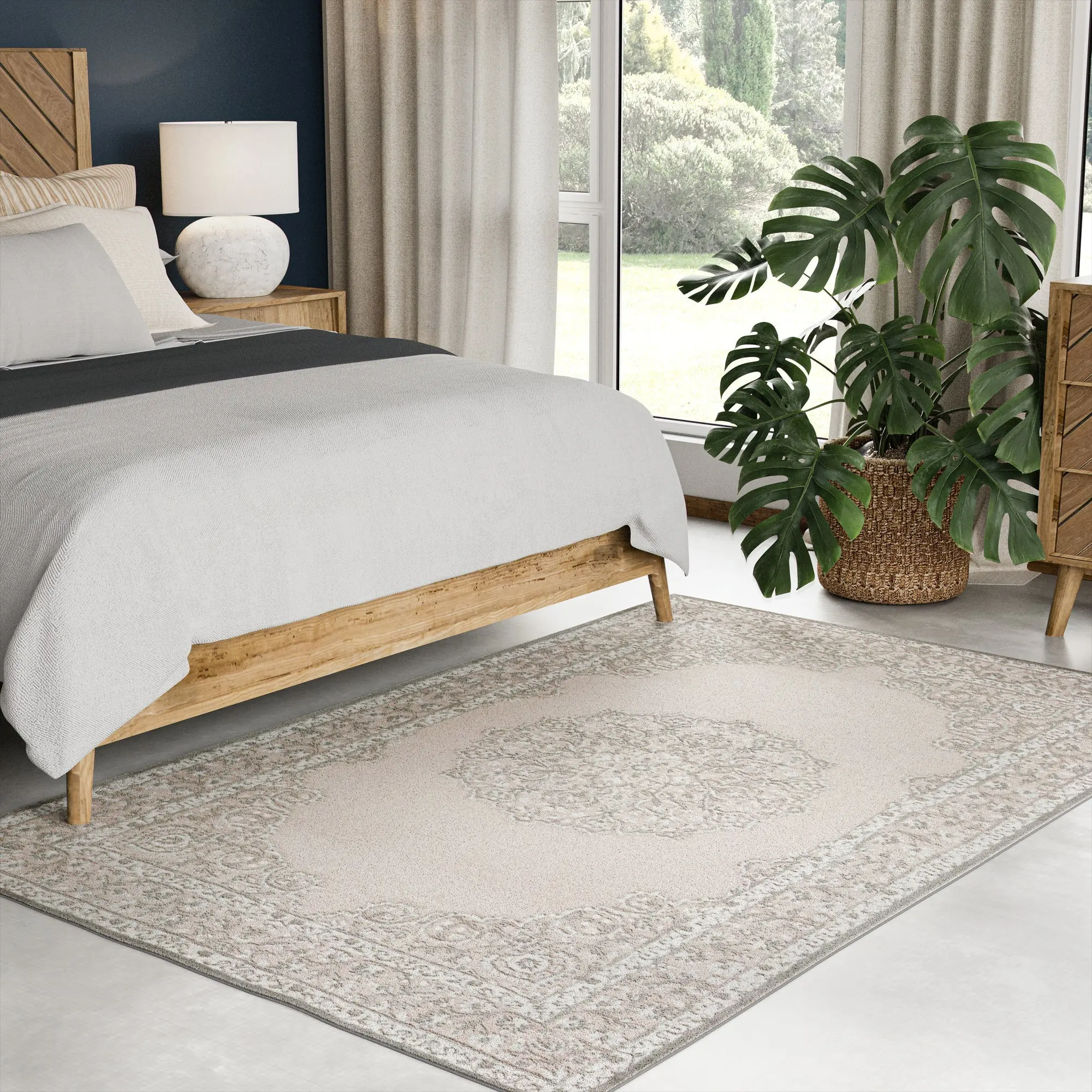 Introducing the Aprilia Collection – a pinnacle of modern luxury in rug design. With captivating white and beige or gray and white color variations, these power-loomed rugs showcase a sophisticated center medallion and scrolling border. Versatile in style and available in various sizes, including runners and area rugs, the Aprilia Collection effortlessly enhances the ambiance of any space, offering a perfect blend of contemporary style and functional elegance.