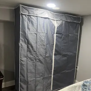 ·【ZIPPERED DUSTPROOF COVER】The new E12C Portable Closets is equipped with Zippered Dustproof Cover,Insulates your clothes from dust when using the garment rack,The dustproof cover has zippers for perfect sealing,And also protects your privacy when you have guests visiting your home,The cover is very easy to clean,The waterproof material just needs to be gently wiped with damp cloth and it looks brand new!
