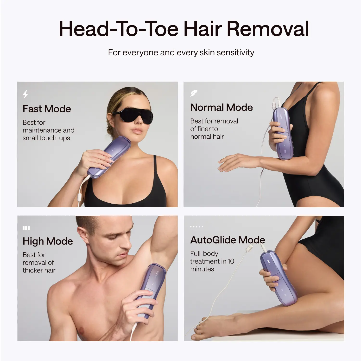 Yes, you can use Ulike IPL devices on almost every part of your body. However, please avoid using it on your genitals, eyes, tattooed areas, or parts of the skin with open wounds. To ensure your comfort, we recommend treating sensitive areas such as the bikini area, inner thighs, and face with the lowest power level and gradually increasing levels as you feel comfortable.