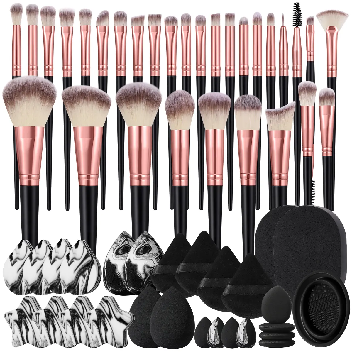 ✨ Comprehensive Set: This kit includes 30 brushes, 4 sponges, 4 finger puffs, 4 triangle puffs, 4 mini sponges, 2 facial cleansing sponges, 8 powder puffs (4 star/4 teardrop), and 1 brush cleaner bowl. Perfect for all your makeup needs.