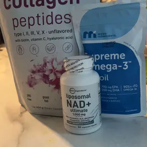 Our Liposomal NAD+ Capsules offer a 10-in-1 Liposomal NAD+ Ultimate formula with a broad-spectrum antioxidant complex for advanced cellular support. Delivers a 1,000mg combined dose per serving to promote anti-aging and daily vitality.