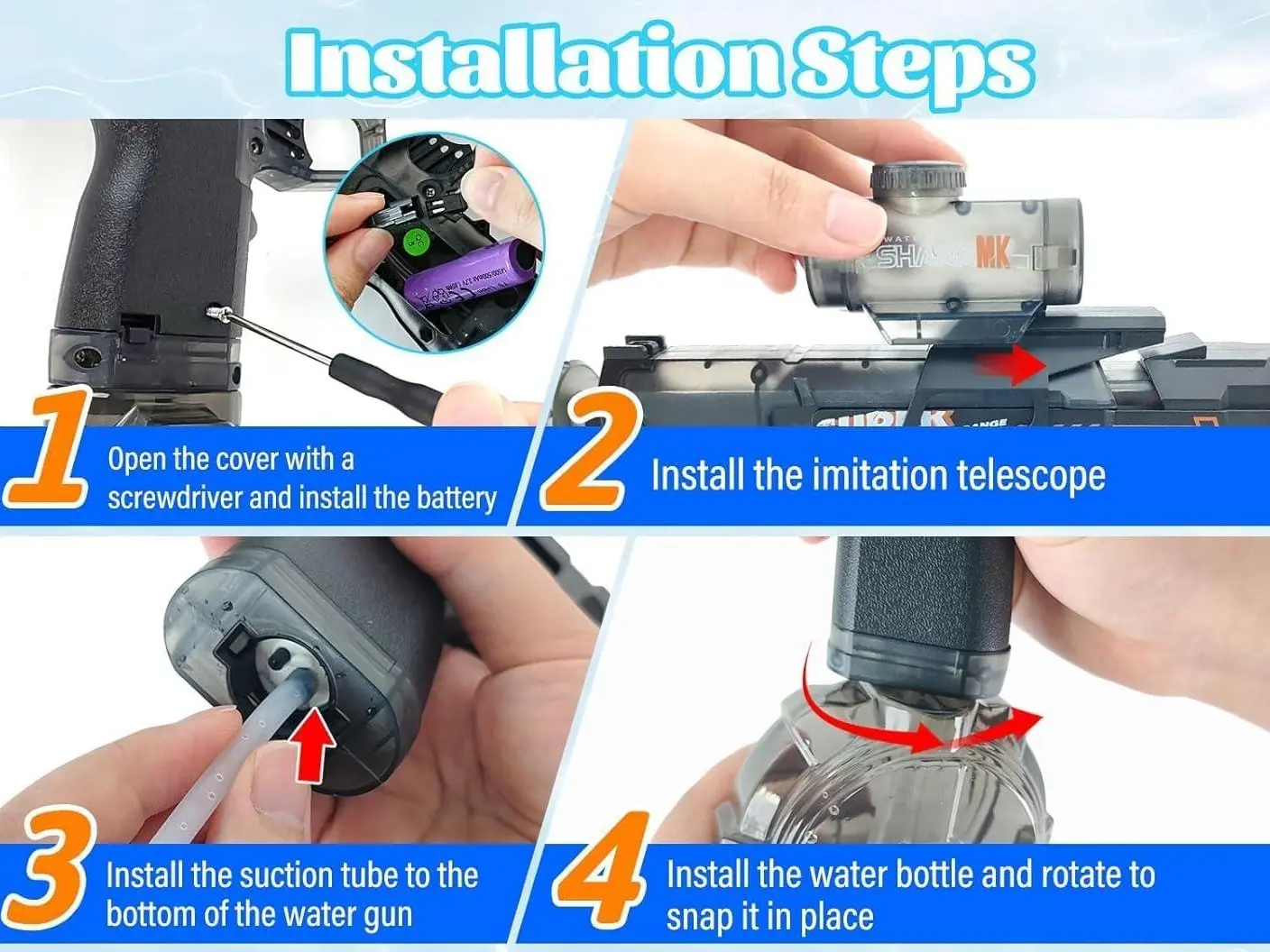 ·Powerful Electric Drive: Dominate your water battles with a powerful electric drive system that delivers strong and consistent water streams. With an enhanced shooting range of up to 26 feet, you can hit targets from a distance, giving you a competitive edge.