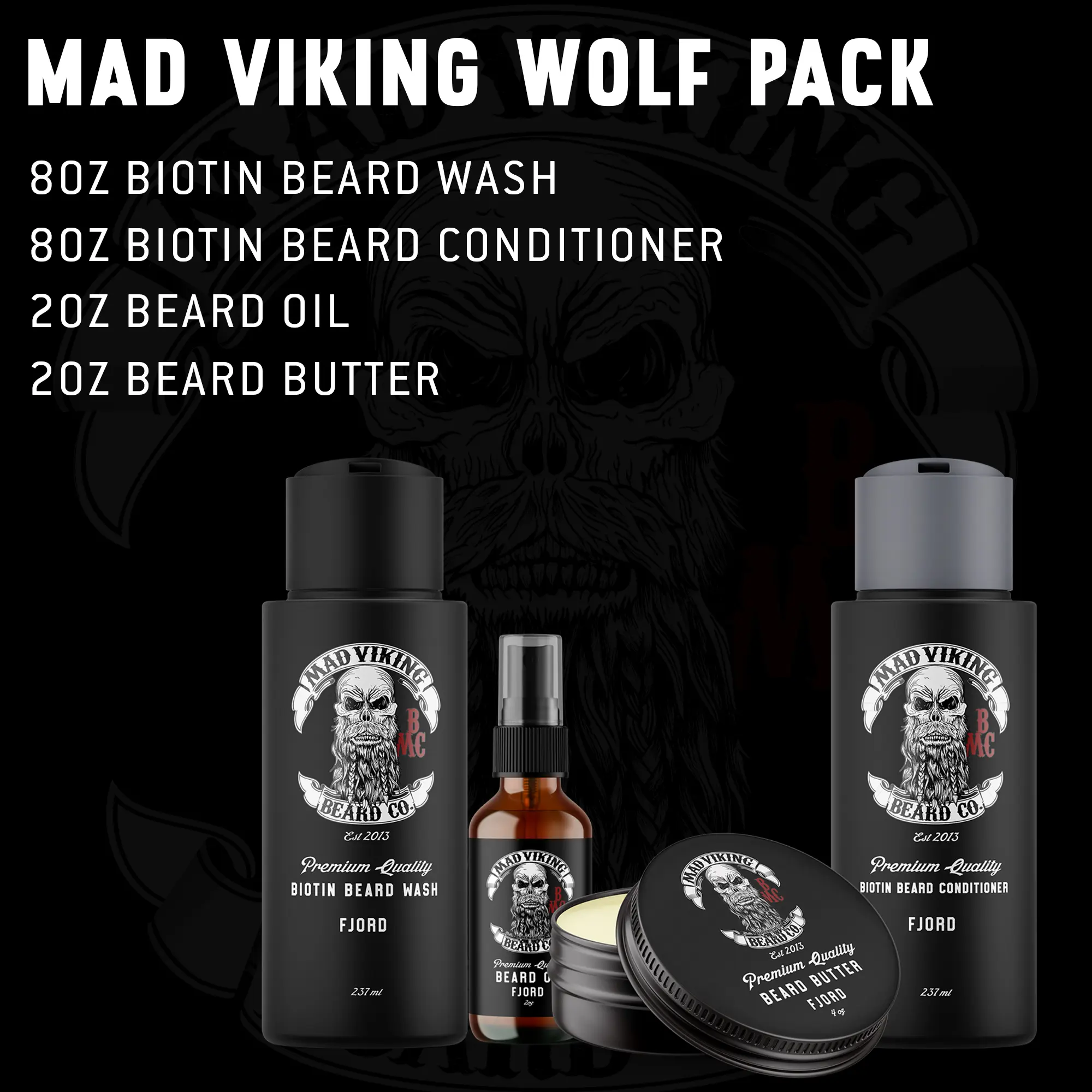 The MAD VIKING WOLF PACK offers the best premium beard care products at a substantial savings! Perfect for aspiring Viking Beardsmen, this kit is tested and approved by the MAD VIKING Beard Team.