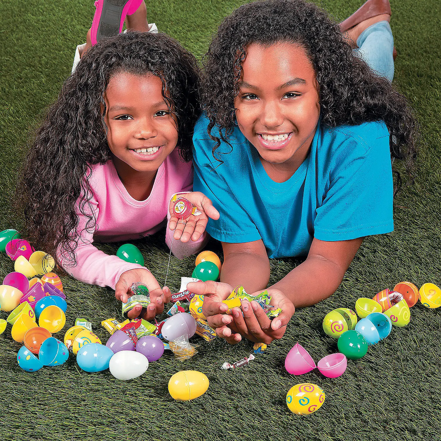 Filling Easter baskets is easy with these plastic eggs! Each comes pre-filled with fun toys that youngsters love. They are a great alternative to candy, and their bright colors make them easy to find at the Easter egg hunt. They're also fun for Sunday School events. Let the hunt begin! Each plastic egg is pre-filled with one toy and one sticker. © OTCbr