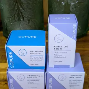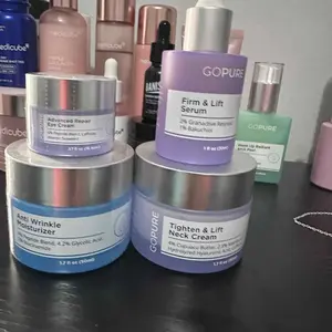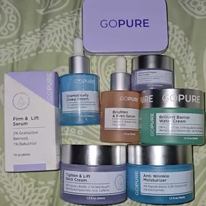 I was using a very expensive line and I have switched to Go Pure, I am so impressed with Go Pure, my first product was the neck cream and I was hooked, I have since used the serum trio, moisturizer and eye cream, I could go on and on about the products, the bottom line is Go Pure works!!!