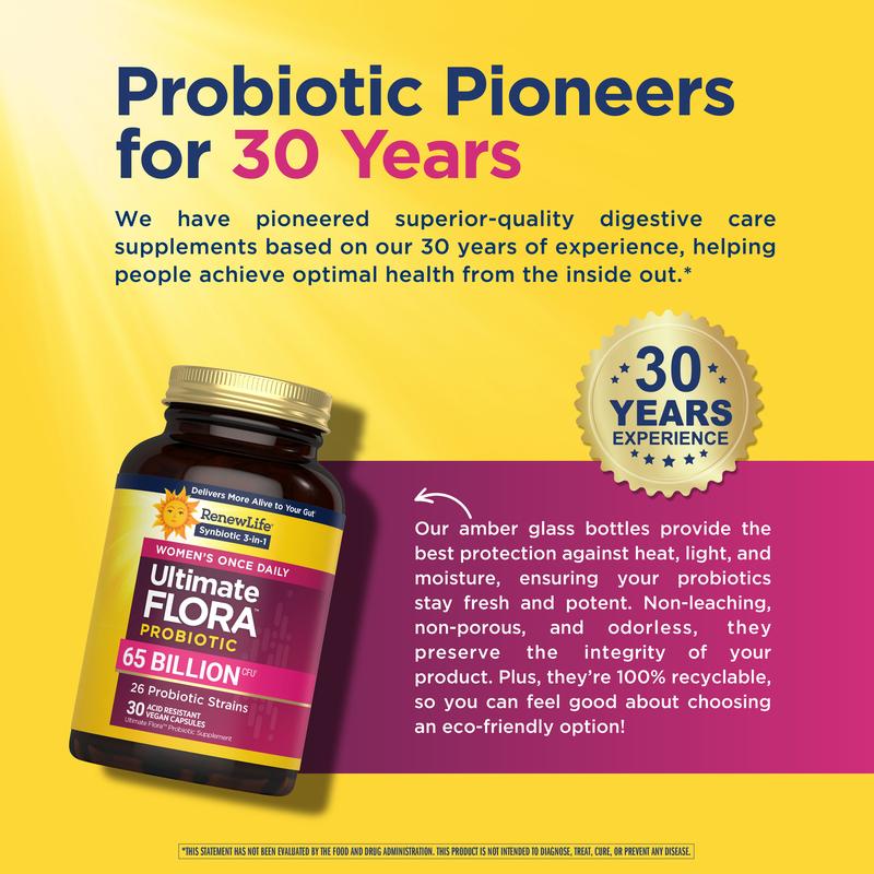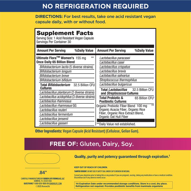 ·Ultimate Flora Women’s Probiotic 65 Billion CFU: Provides advanced support for vaginal, digestive and immune health in a once daily capsule