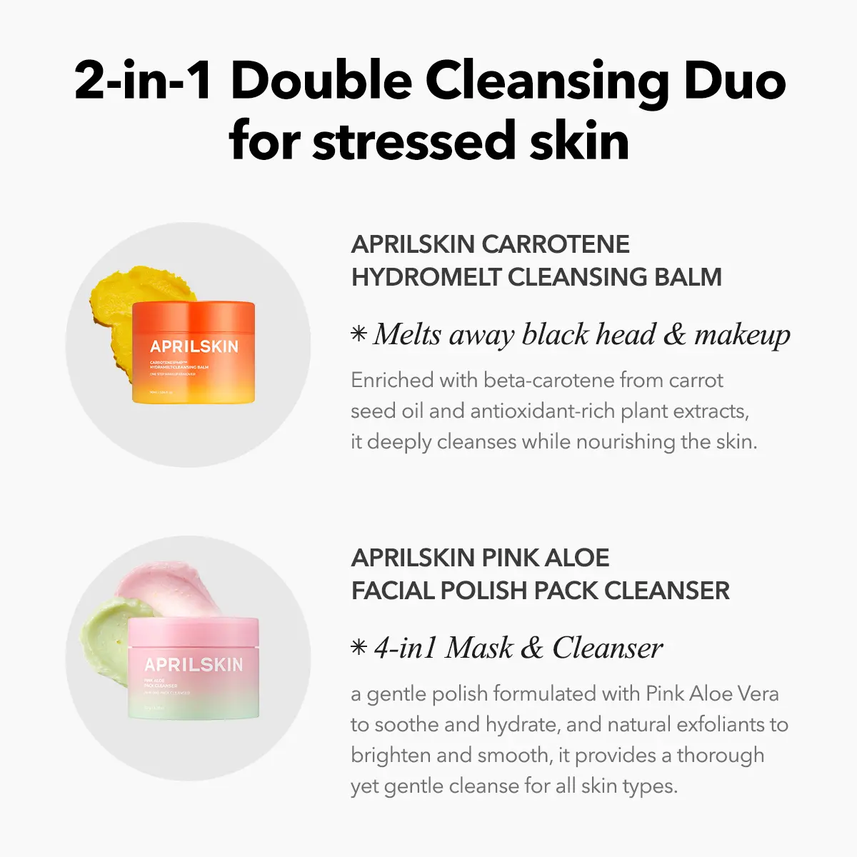 This set includes our top-performing products: Carrotene Cleansing Balm, Pink Aloe Pack Cleanser, Pink Aloe Vita Toner, Pink Aloe Mucin Serum or Beta Carrotene Serum, Carrotene IPMP Solution, and your choice of either the Calendula Peel Off Pack (Mask) or Carrotene Clay Mask.