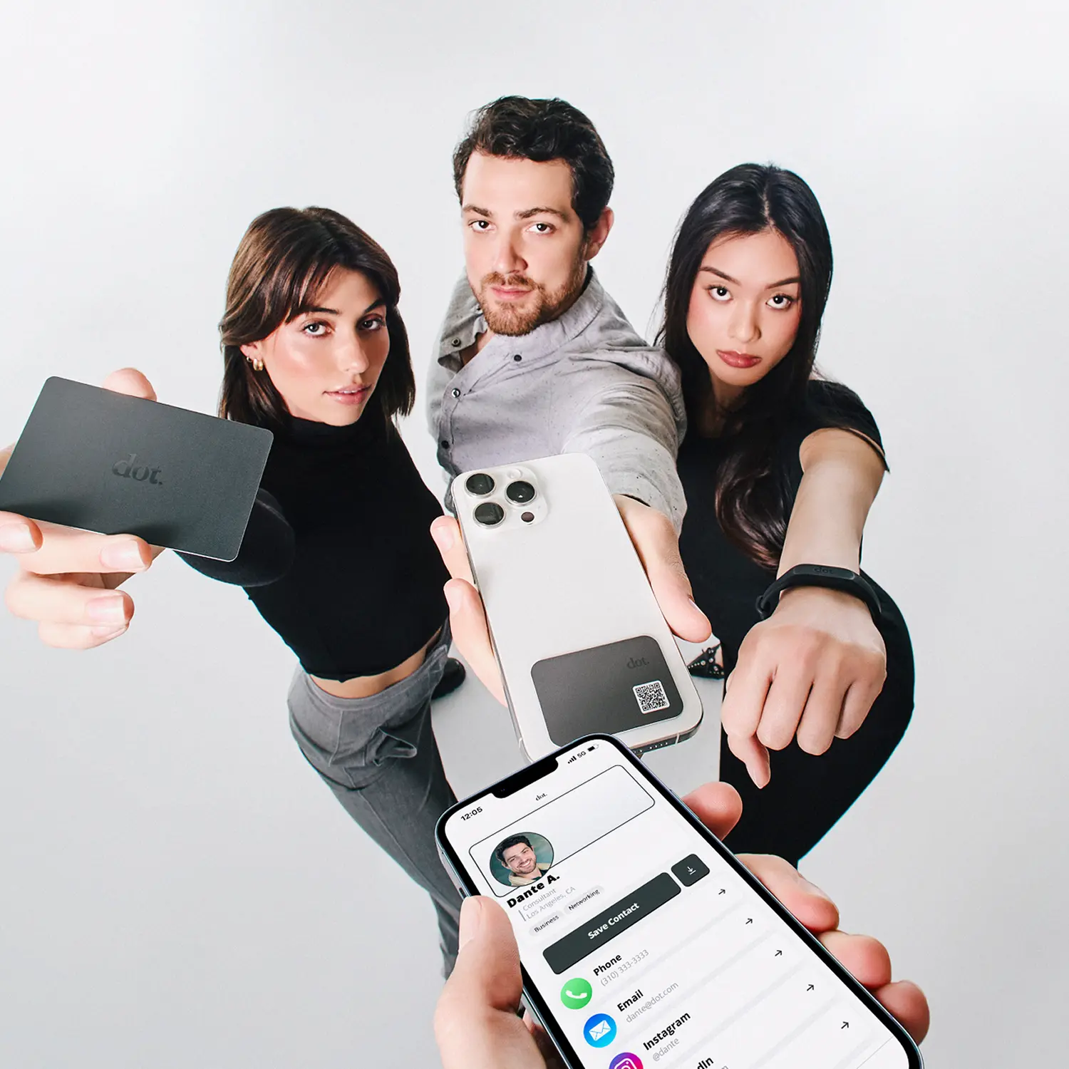 A dot card has two ways to share: NFC and a QR code. It is compatible with all smartphones. You will always have a fast and convenient way to share your contact info.