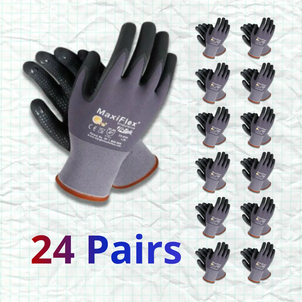 The Maxi Flex Work Gloves are suitable for various tasks. The nitrile palm coating and knit wrist design make them reliable. Trust Maxi Flex Ultimate for its performance and reliability. These gloves are a 24 pairs pack, enhancing your work efficiency.