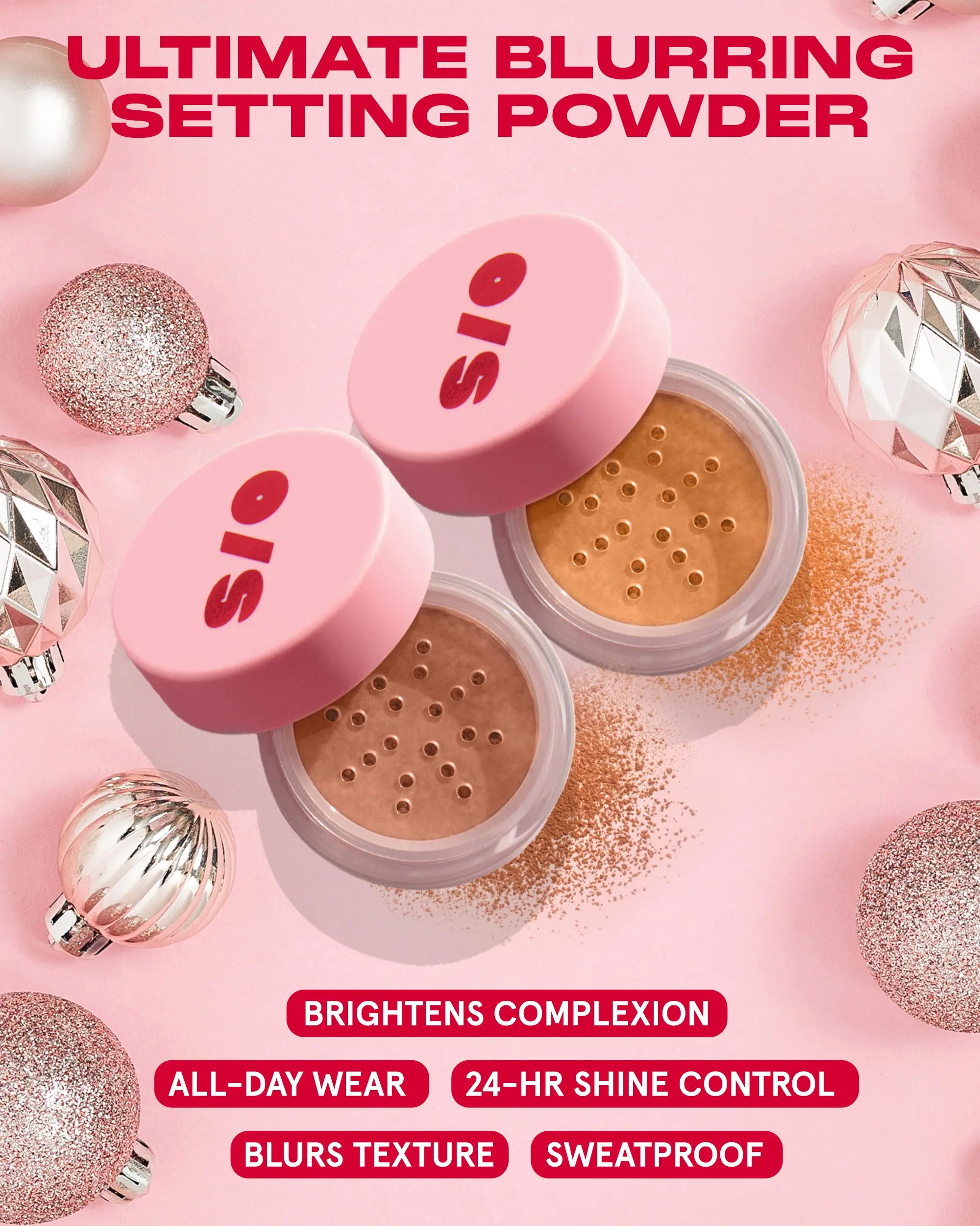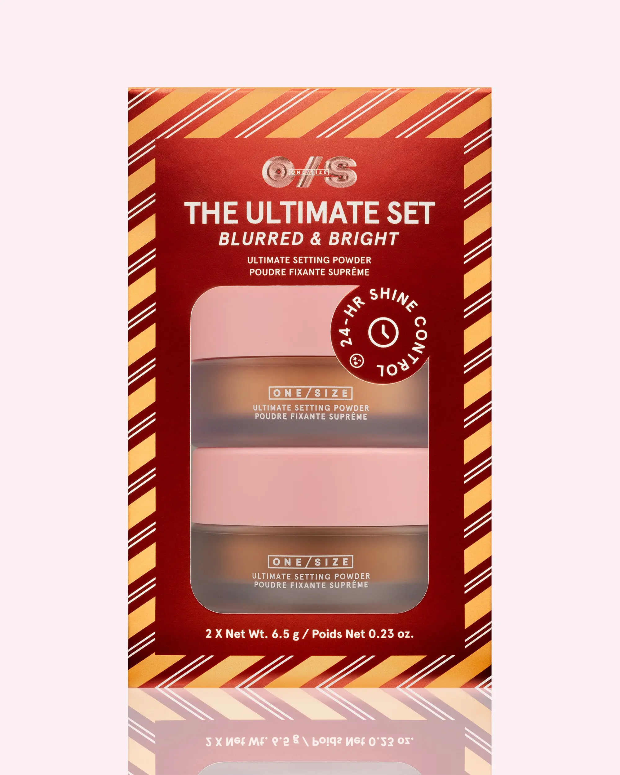 A giftable pair of award-winning mini setting powders, dressed for the holidays. Delivers premium performance and clinically proven 24-hour shine control while instantly blurring texture.