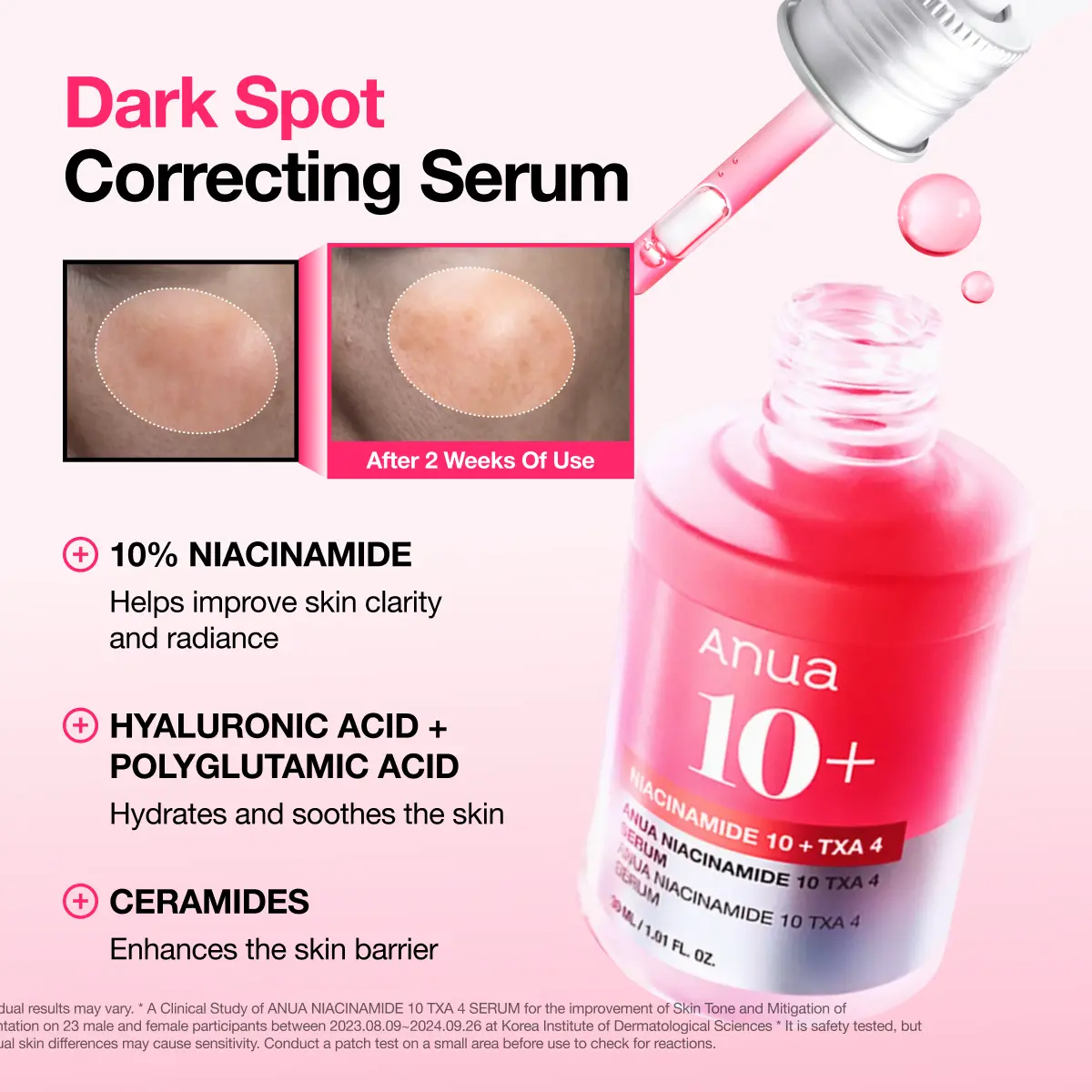 Apply pea size of the serum to a dry face after cleansing. Follow up with a moisturizer for hydrating. ※ Patch Test recommended.