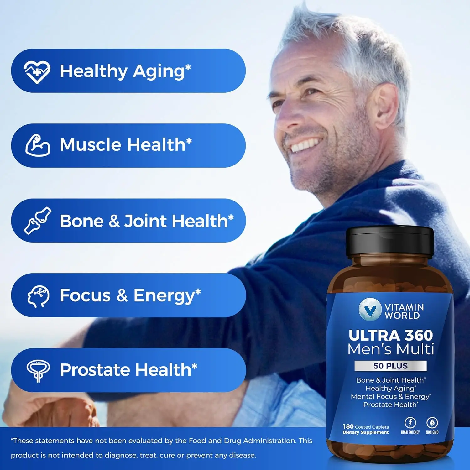 ·HIGH POTENCY MULTIVITAMIN: ULTRA 360 Men’s Multi 50+ featuring 27 vitamins & minerals plus herbs including Vitamin A, C, D, E, B-complex, Zinc & Selenium for men's 50+ wellness support;* Men 50+ should take 2 caplets daily with a meal
