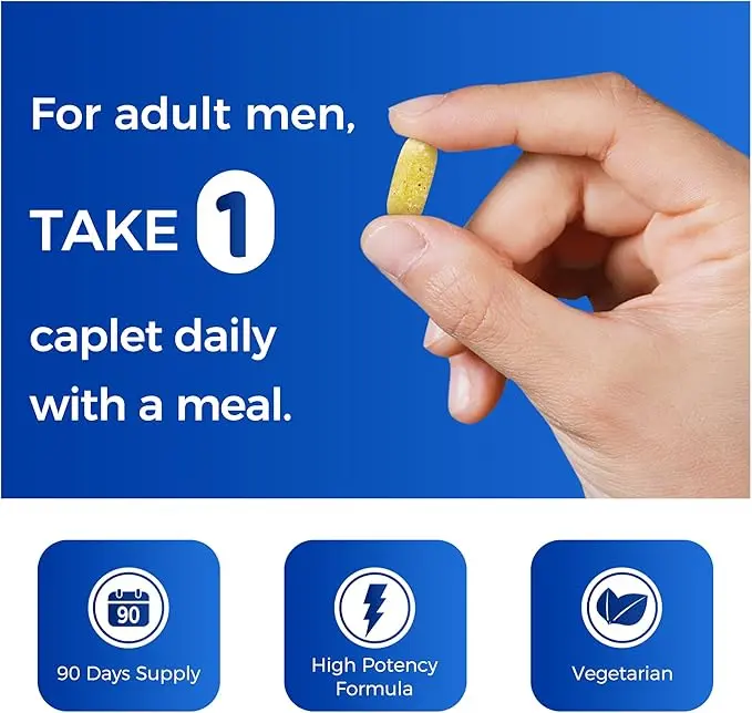·HIGH POTENCY ONE DAILY MULTIVITAMIN: Featured with 25 key nutrients for men, including Vitamin A, C, D, E & B-complex and Zinc to offer a wide variety of key nutrients and support men's overall health;* Adult men should take one caplet daily with a meal