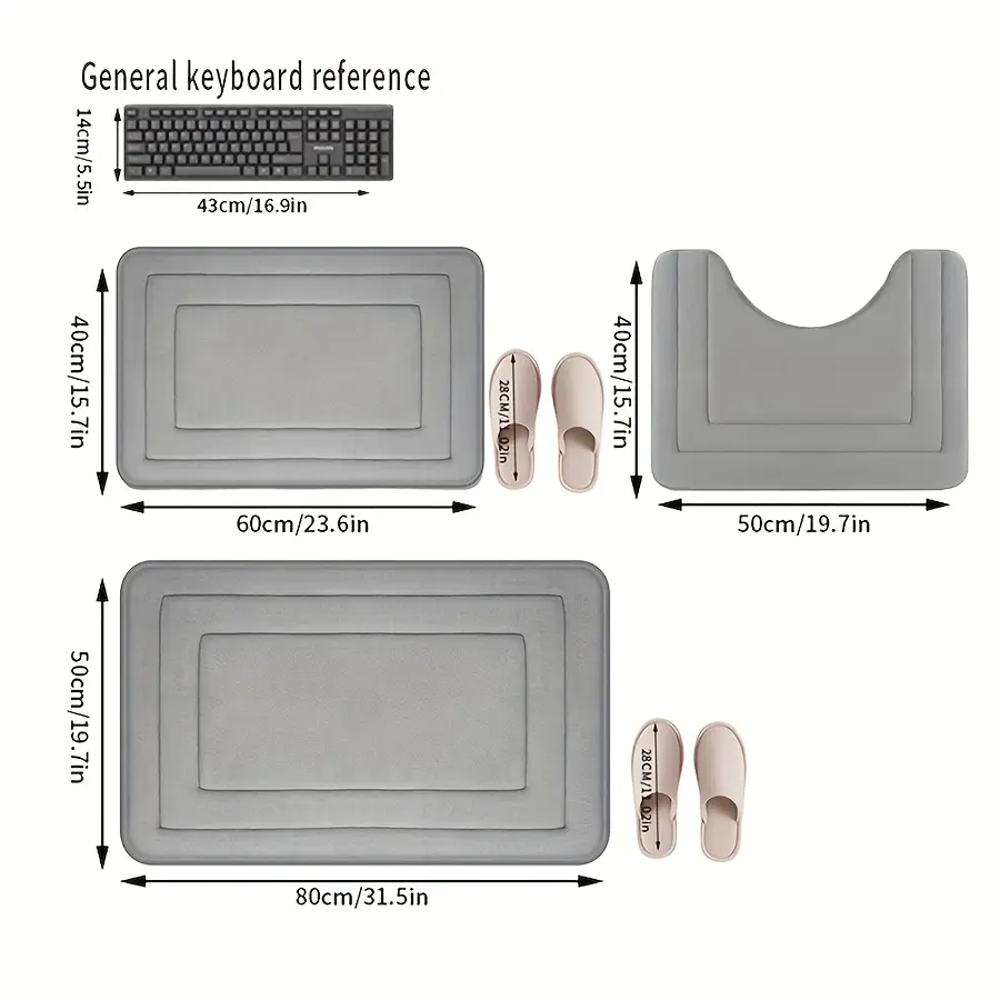 3-Pack Ultra Absorbent Bath Mats | Non-Slip Bathroom Rugs, Soft and Comfortable Polyester, Rectangle Shape, Machine Made, Universal Holiday Use