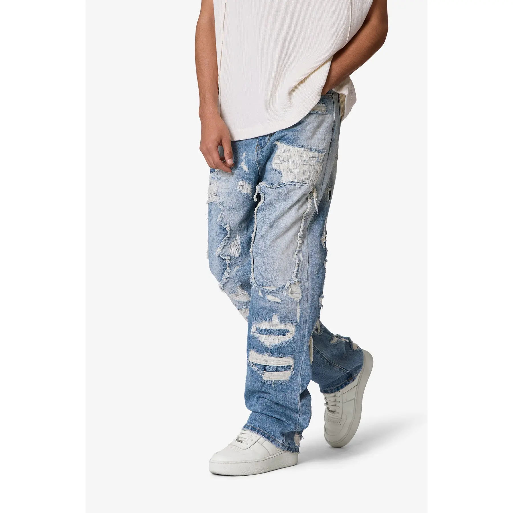 5. mnml Ultra Baggy Better Repaired Denim - Light Blue
