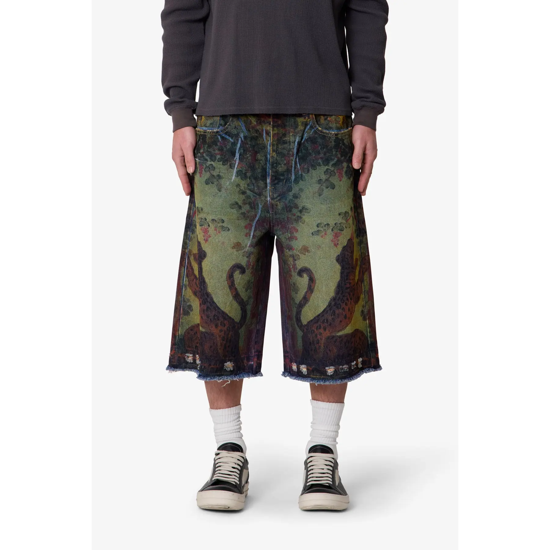Ultra Baggy Leopard Denim Jorts From @mnml #baggyjorts #baggyshorts #denimshorts #streetwear #creatorsearchinsights