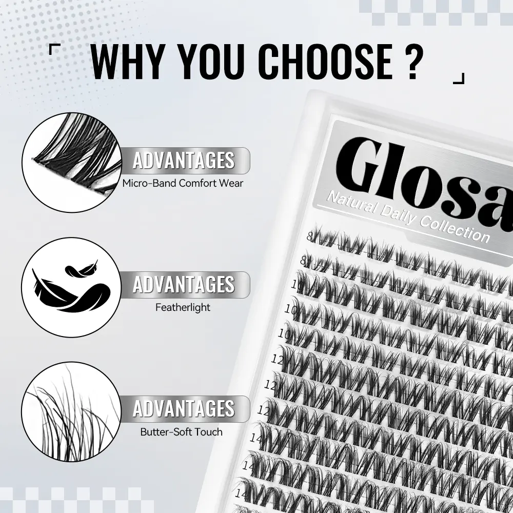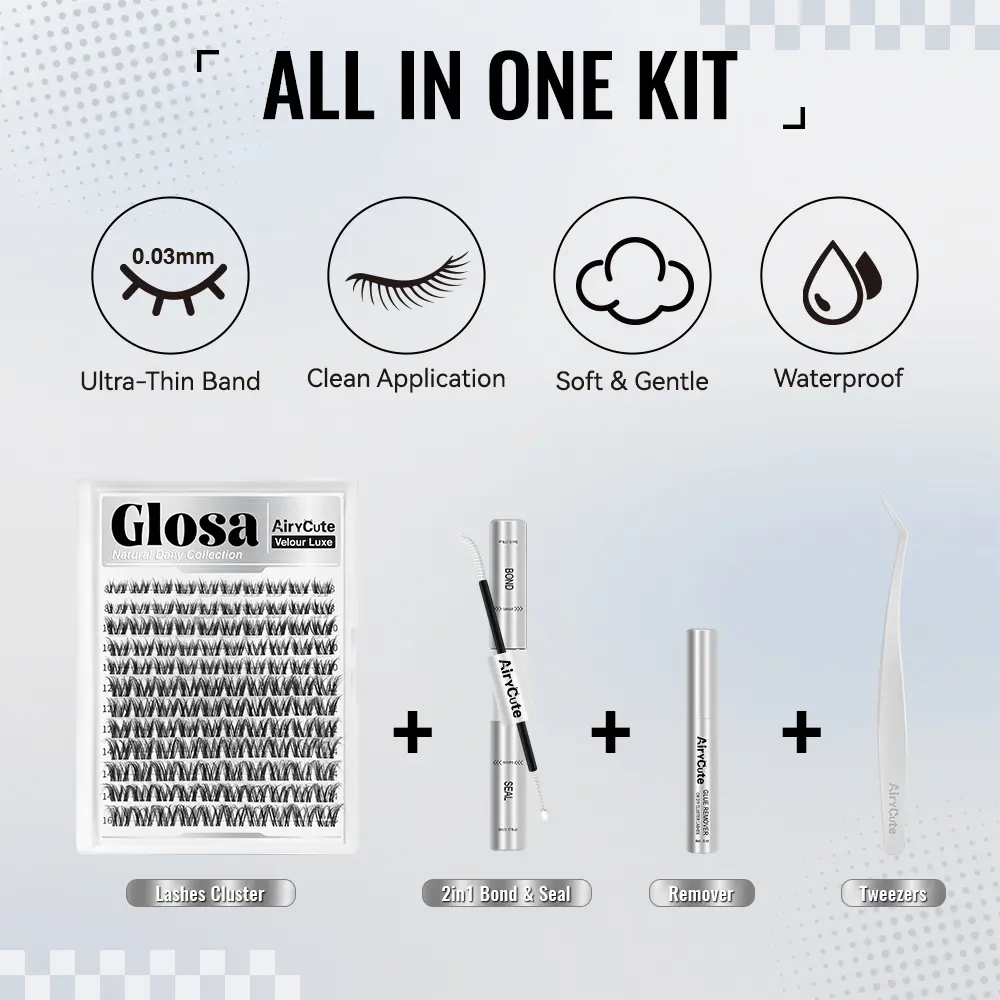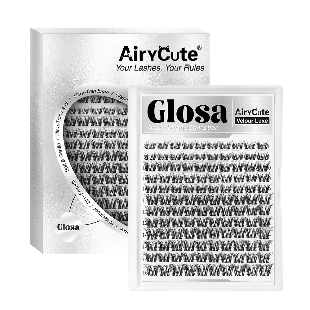 This is my second kit. Love how natural Glosa is. I've had Flaunt and Velour. All styles are super high quality however, the glue has been trash. The first 2 glues didn't last 3 days but this last set I've had on for 5 days and still good but it's white and it dries white. Please fix it.