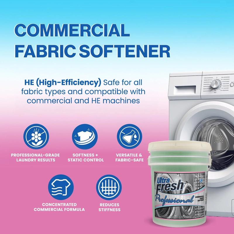 Immerse yourself in the luxurious softness, conditioning, and invigorating freshness this Ultra Fresh Professional 5 Gallon Fresh Scent Fabric Softener brings to your clothes.Crafted with a vibrant scent, this fabric softener is designed to cater to all washable fabrics, ensuring a gentle touch while preserving the integrity of your favorite garments. The carefully curated formula softens, conditions, and delivers a long-lasting freshness that will make your clothes smell like they just emerged from a sun-kissed meadow. Its concentrated power in a generous 5-gallon bucket sets this fabric softener apart. This powerhouse can handle up to 640 loads, providing an extended period of blissful softness and fragrance. Whether you use a standard washing machine or a high-efficiency (HE) model, this laundry additive fabric softener is compatible with both, ensuring its versatility in meeting your laundry needs. Be confident in the compatibility of this softener with your septic system, as it has undergone thorough testing and has been proven suitable for septic systems when used according to the provided directions. To make your laundry routine even more convenient, the bucket includes a pump for effortless dispensing, making laundry day that much easier.Embrace the joy of ultra-fresh, incredibly soft, and long-lasting scented clothes with Ultra Fresh Professional 5 Gallon Fresh Scent Fabric Softener.