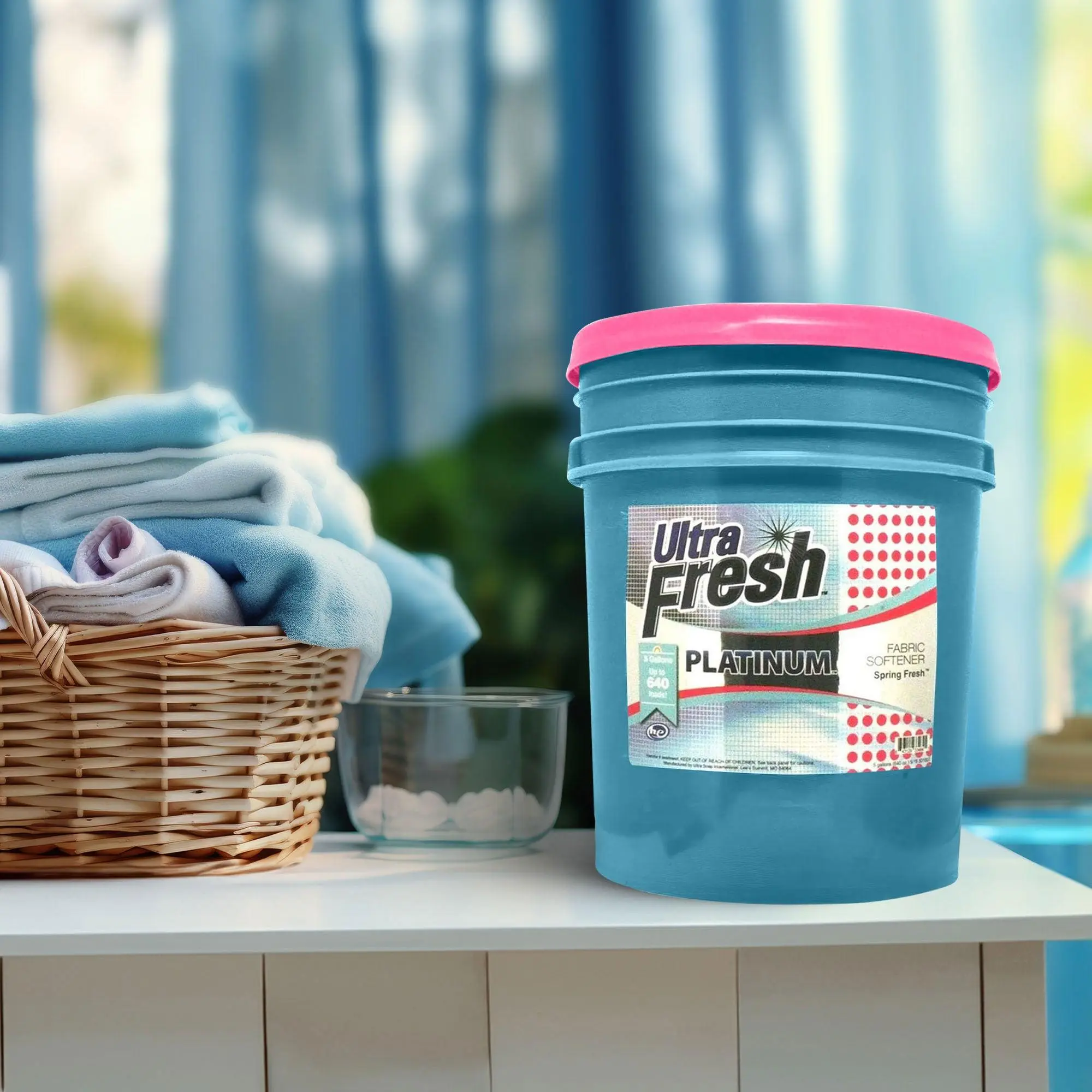Immerse yourself in the softness and freshness of Ultra Fresh Platinum 5 Gallon Fabric Softener. This fragrance-free formula is designed for all washable fabrics, ensuring a gentle touch and preserving garment integrity. The concentrated power in a 5-gallon bucket handles up to 640 loads, providing extended softness and freshness.