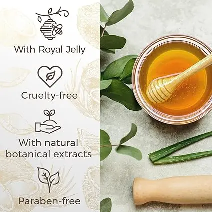 ·BENEFITS OF ROYAL JELLY: Our hair products feature Royal Jelly, a royalactin-rich ingredient that helps keep hair strong and nourished. A moisturizing exclusive blend of natural origin extracts natural origin to revitalize dry, damaged hair