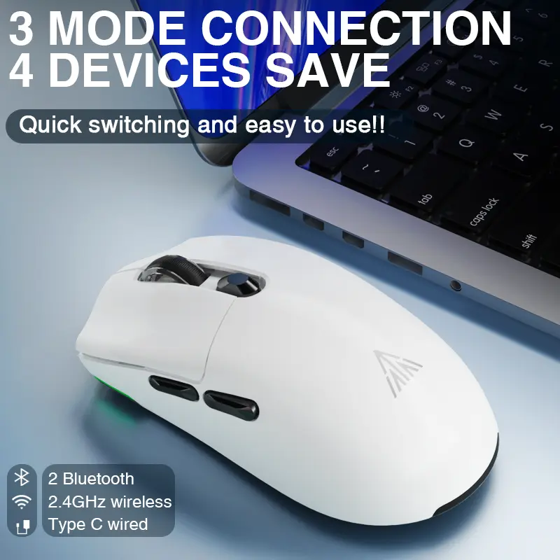 ·3 Mode Wireless Gaming Mouse:This wireless gaming mouse adopts advanced USB-C wired,2.4GHz wireless,2 BT 5.0transmission technology. Users can save 4 devices,fast response and easy switching.SM800 mouse compatible with your PC,Laptop,Macbook,Mobile Phones