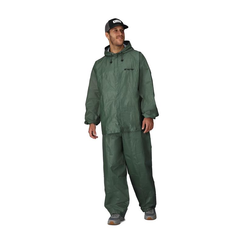 By volume, the men's no-frills, waterproof Ultra-Lite Rain Suit is the best-selling product frogg toggs makes. That’s because it offers great performance at a much lower price point. Constructed with frogg toggs’ breathable non-woven fabric, this men’s rain suit is waterproof, wind-resistant, and extremely lightweight and packable. The jacket features an adjustable hood with cord locks. The full-length front zipper with a storm flap helps to keep moisture out. The pants feature an elastic waist and wide cuff openings for easy pull-on. Stuff sack included for easy toting. Priced so you can keep one in your pack, your vehicle, and anywhere else you need a reliable rain suit.