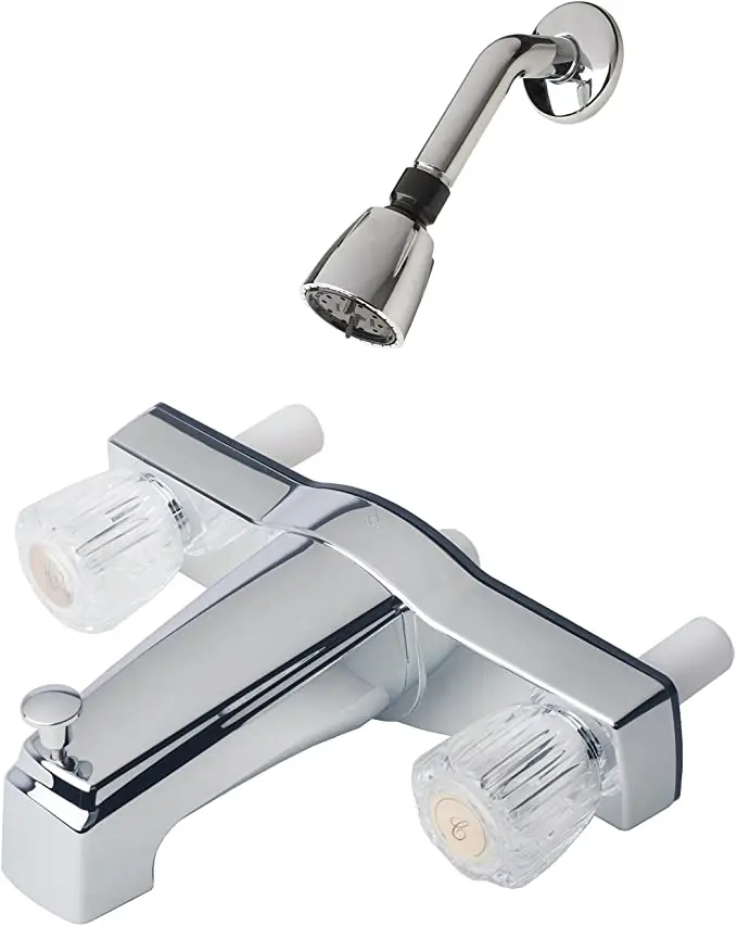 5. Ultra Mobile Home 8" Tub & Shower Faucet Chrome With Clear Handles (Plastic Underbody) Shower Head Kit Included