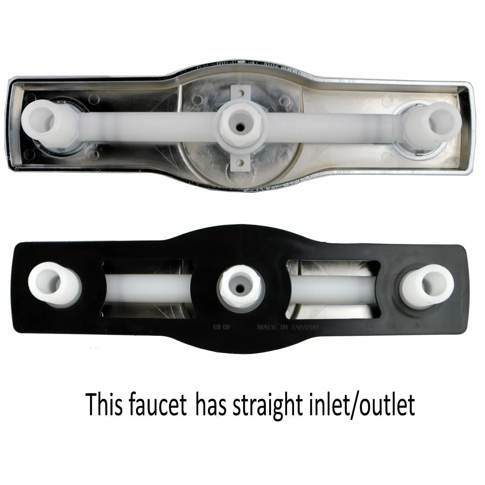 ·Clear Acrylic Handles, 1/2" Male Thread Connections, Plastic Underbody, Chrome Plated Plastic Body, and Quarter Turn Cartridges.