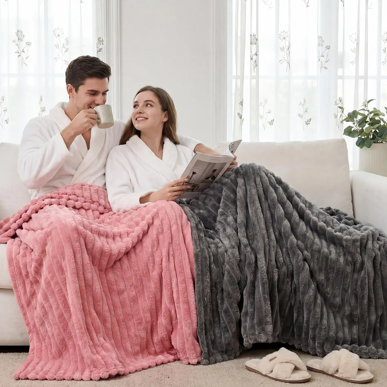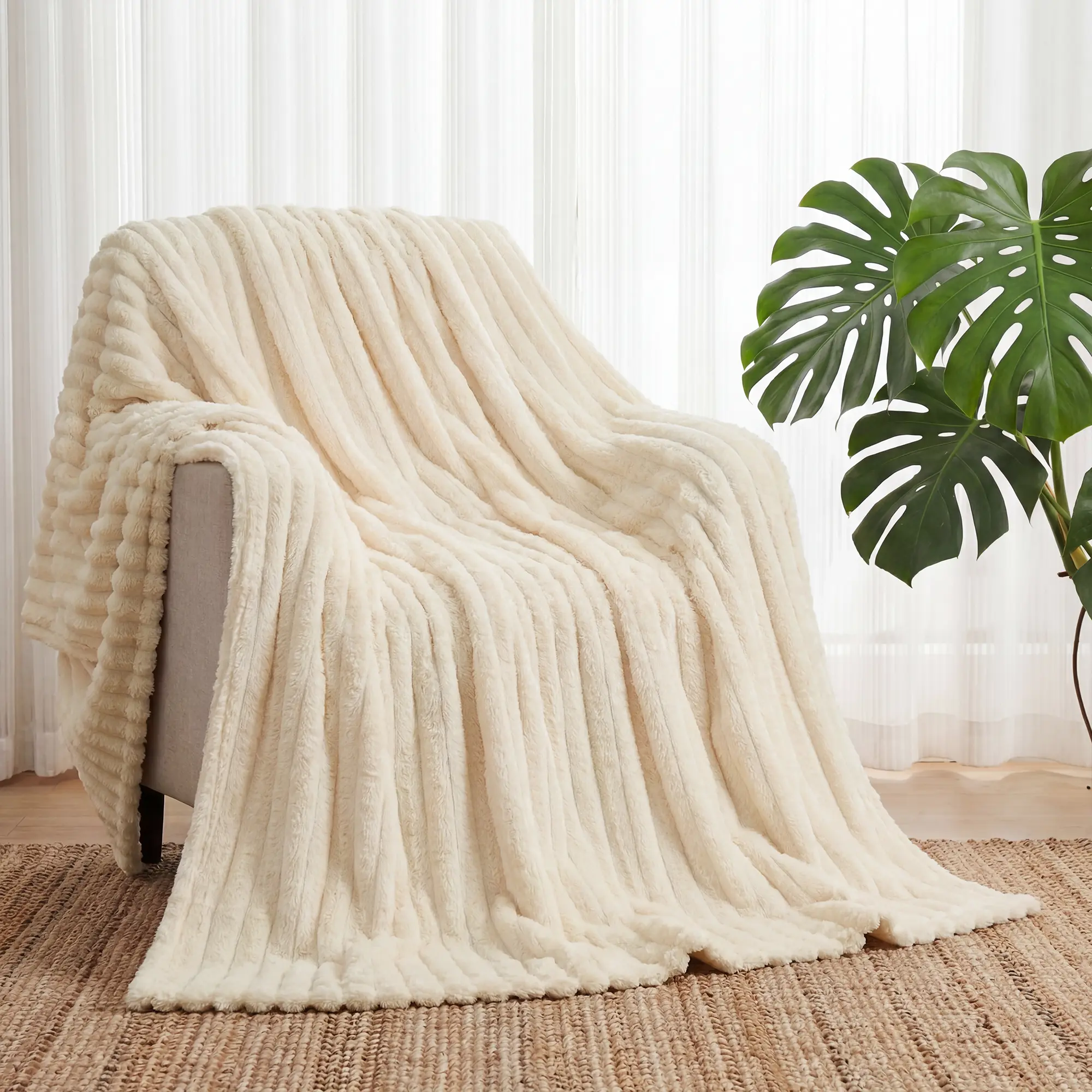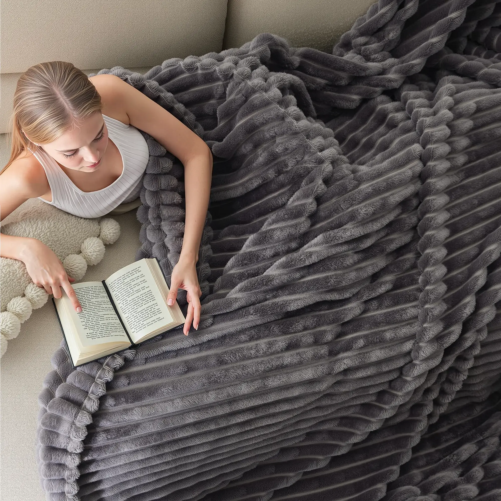 ·3D Striped Texture — Unique raised stripes with a smooth, sheared design between each ridge! This creative touch adds visual depth, enhances breathability, and keeps the blanket airy and stylish.