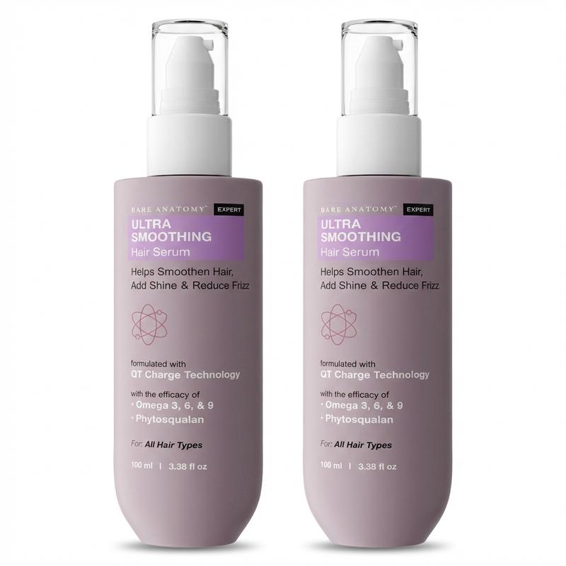 Bare Anatomy’s Ultra Smoothing Hair Serum improves texture by up to 27%* while fighting frizz, flyaways, and humidity. It delivers shine, softness, and protection from UV rays. Perfect for daily hair nourishment & styling.
