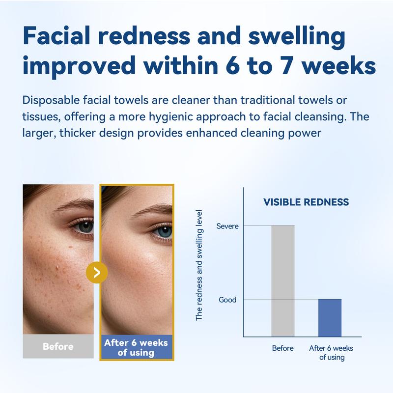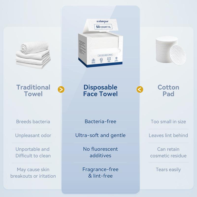 These disposable face towelettes are crafted with ultra-soft, gentle material. They ensure a comfortable cleansing experience, ideal for daily use. The towelettes measure 10 in x 12 in (26cm x 30cm), providing ample coverage for effective cleaning. They are hypoallergenic, ensuring a gentle touch on your skin.