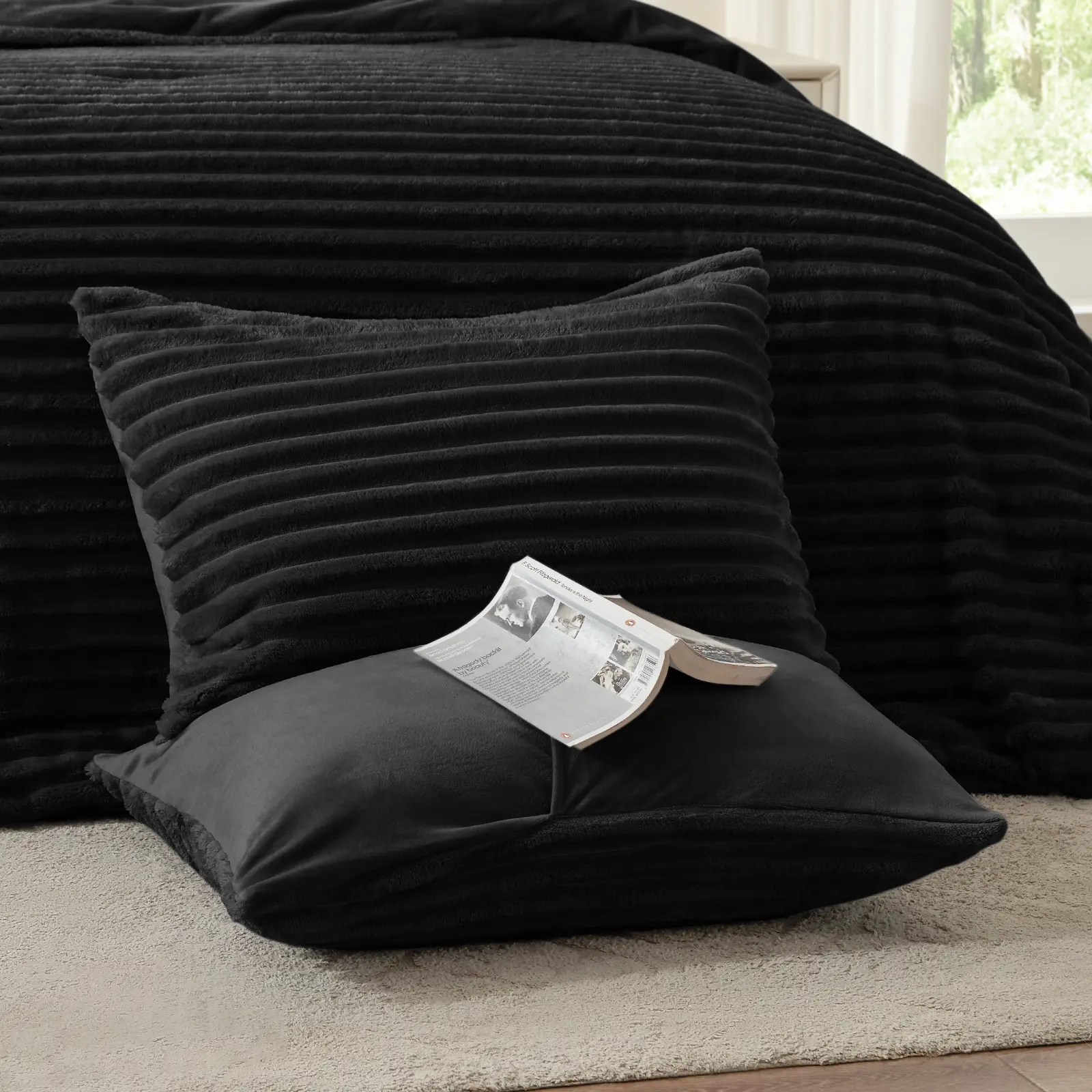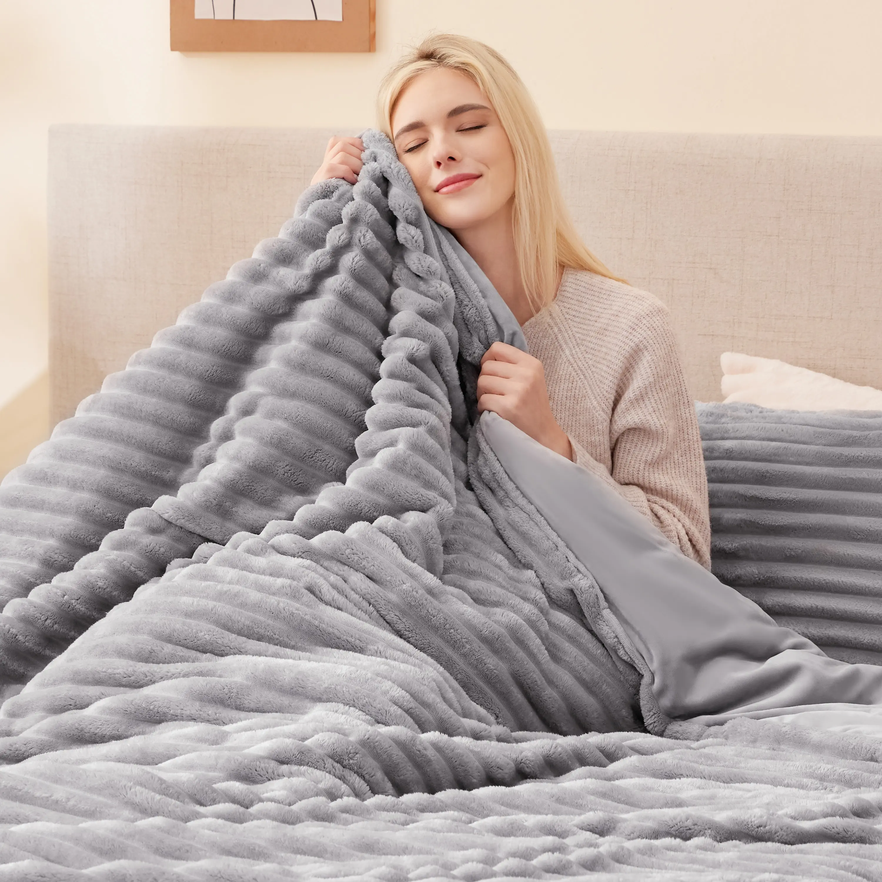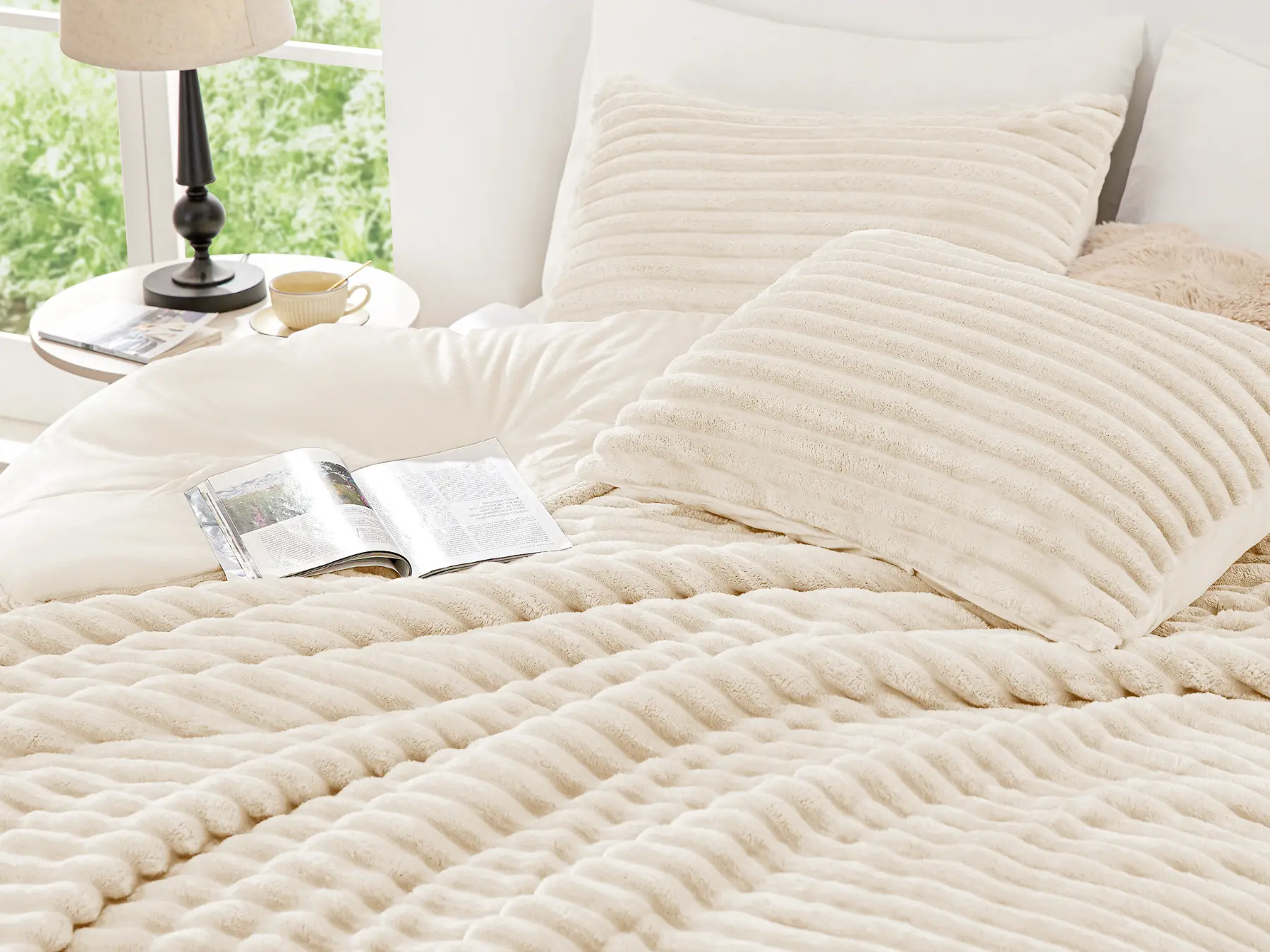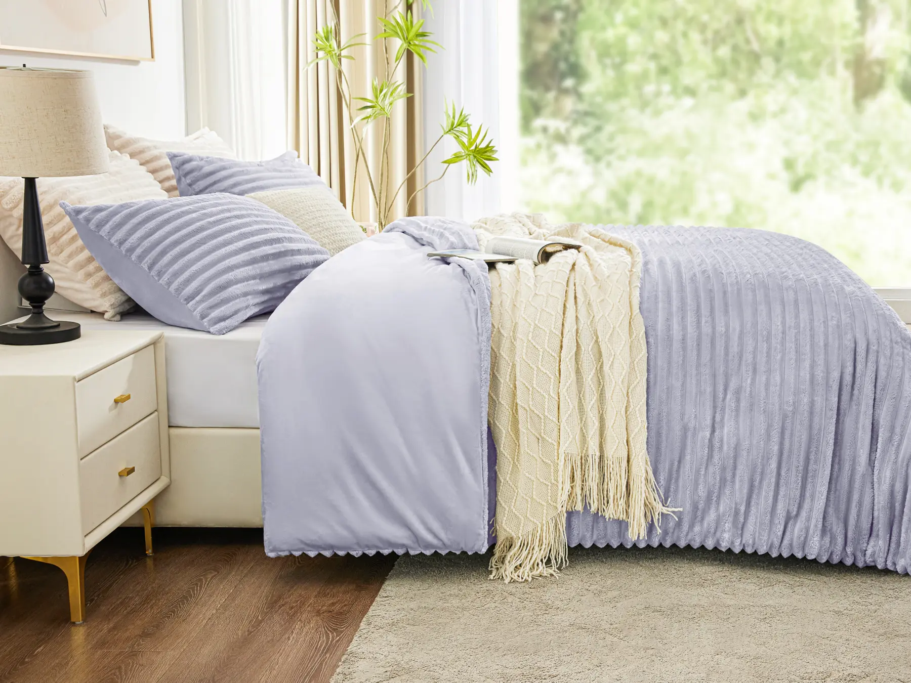 Ultra-Soft Flannel Material:Experience the luxurious comfort of our fluffy bed comforter set, crafted from premium flannel fabric. the ultra-soft texture provides a gentle, cozy feel, perfect for snuggling up during chilly nights. this flannel material is known for its warmth and durability, ensuring you stay comfortable and cozy all year round.