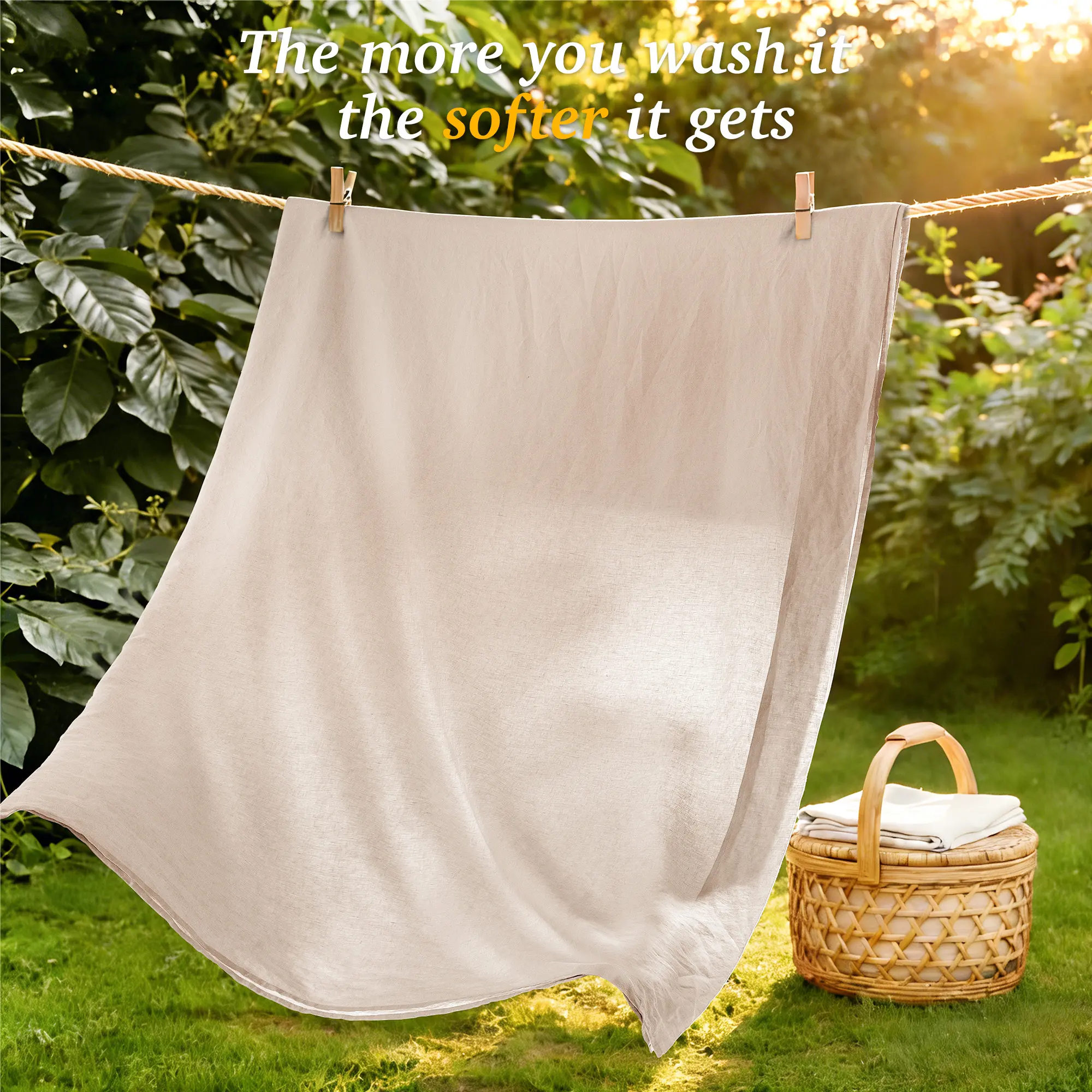 Made from sustainably grown flax fibers, this natural linen bedding is strong, breathable, and gentle on sensitive skin—designed to last without sacrificing softness.