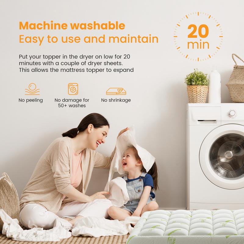 ·【Easy Care & Maintenance】Designed for convenience, our mattress cover is effortlessly machine washable and quick-drying. This practical bed pad simplifies your routine, making clean-ups a breeze. Enjoy the benefits of a hygienic bedding layer without the hassle of complex care instructions.