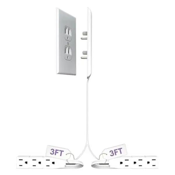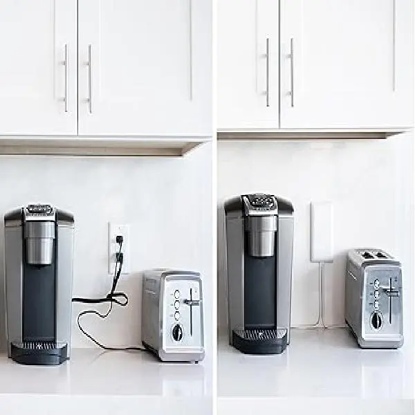 ·IDEAL FOR KITCHEN COUNTERTOPS. Now you can discreetly and completely hide the entire outlet with our outlet and cord concealer kit, while also enhancing your home décor! The flat extension cord provides a sleek solution for managing plugs and cables, creating a clutter-free environment. The dual 3-foot extension cord is perfect for powering appliances up to 3 feet in opposite directions of a single wall outlet. Ideal for kitchen countertops, providing power to appliances on opposite sides of a wall outlet.