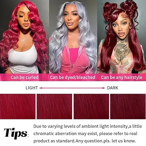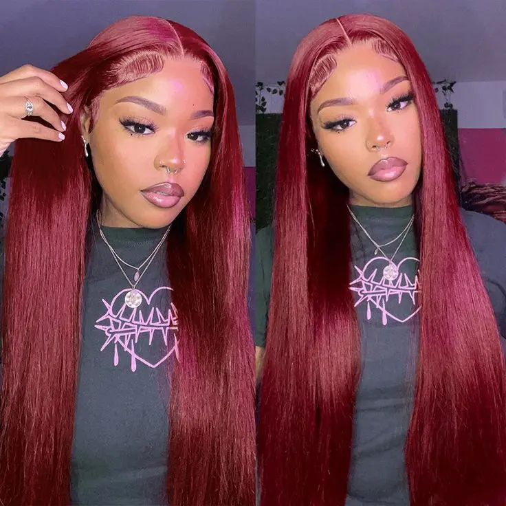 Hair Color:99J Burgundy Wig , Can be Dyed, Bleached, Straightened and Restyled as You Like