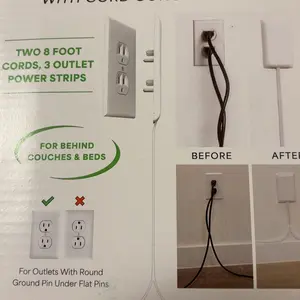 Now, hide outlets and cords discreetly! Our sleek socket concealer kit enhances your home décor while keeping your space tidy. The flat extension cord provides a sleek solution for managing plugs and cables. Perfect for optimizing small areas or improving home aesthetics. Keep your space clutter-free with this 3-foot cord.