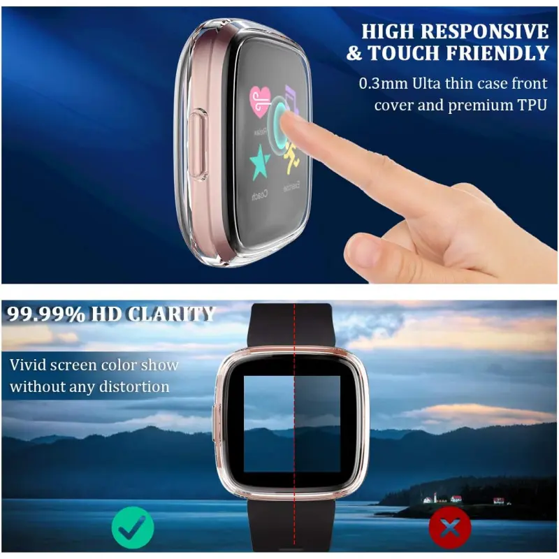 Ultra Thin Screen Protector Case Compatible with Fitbit Versa 2, 3 Pack TPU HD Full Protective Case Cover Scratch Resistant Shock Absorbing for Versa 2 Smartwatch Bands Accessories-USA