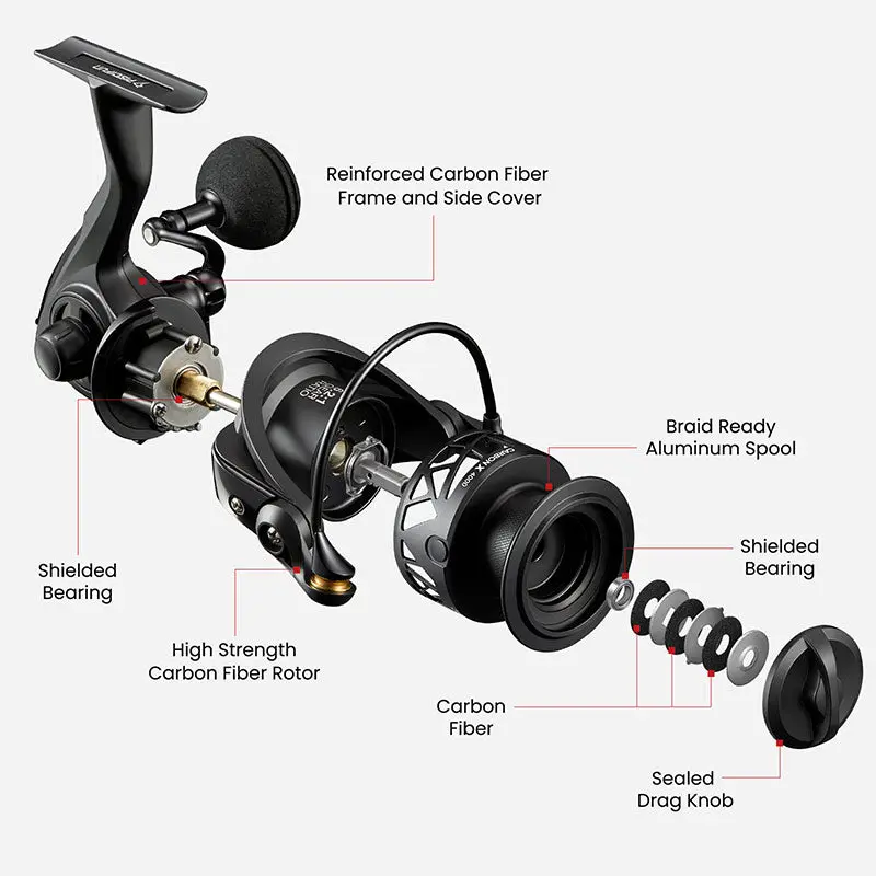 【Upgrade Spinning Reels】- The Carbon X II is meticulously crafted with an all carbon fiber body, rotor and side plate making it one of the lightest in its class, weighing in at a mere 5.5 oz in 1000 model. Compared with the Carbon X, the upgrade Spinning Reel is lighter and more smooth, this lightweight power house is perfect for battling big fish!
