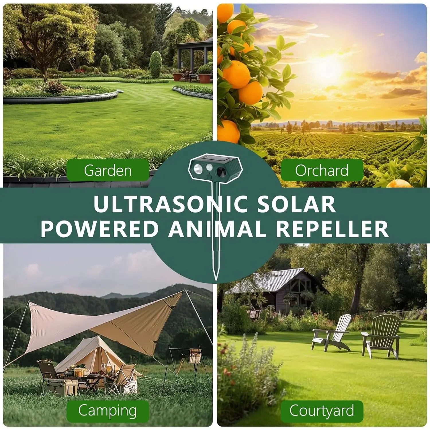 ·【Safe & Human Design】You can simply insert the animal repeller into the ground or hang up where there is plenty of sun light and switch it on, which is perfect for yard, patio, garage, attics, porches, boats, garden, farm, pond, etc. Besides, it is mini enough for you to take it to outdoor, such as camping