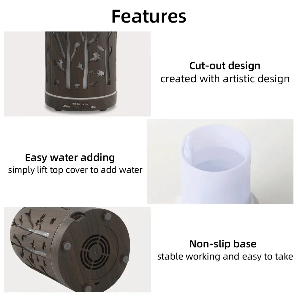 To provide a better life for you, this diffuser maintains an optimum humidity level around 50% for you and your family at home since this aroma mister is designed with the most advanced ultrasonic cool mist technology which can evaporate oil and water at a frequency of 2.4MHz.