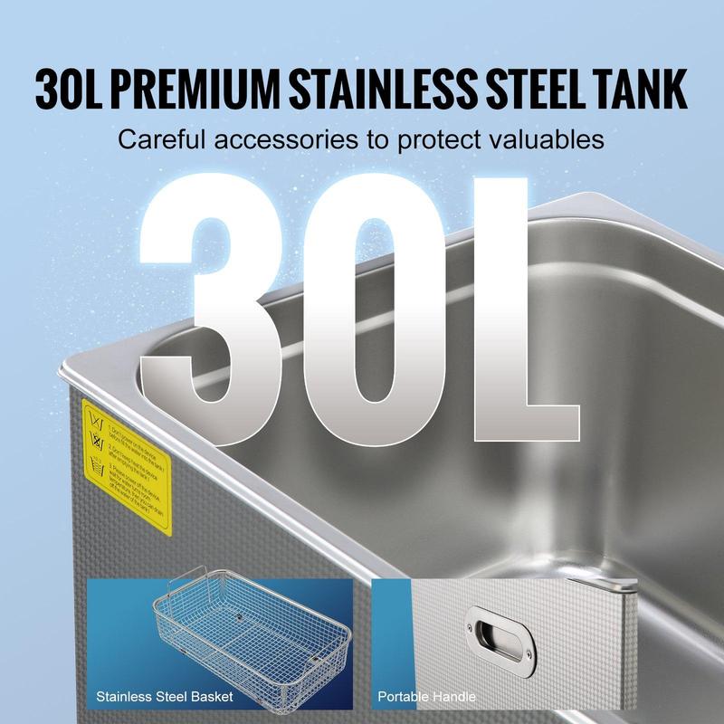 ·Quality You Can Trust: Designed with a premium SUS304 stainless steel tank and basket, the 30L securely holds and cleans various valuable items like jewelry, eyeglasses, and watches. Attention to detail ensures that each item receives a meticulous cleaning.