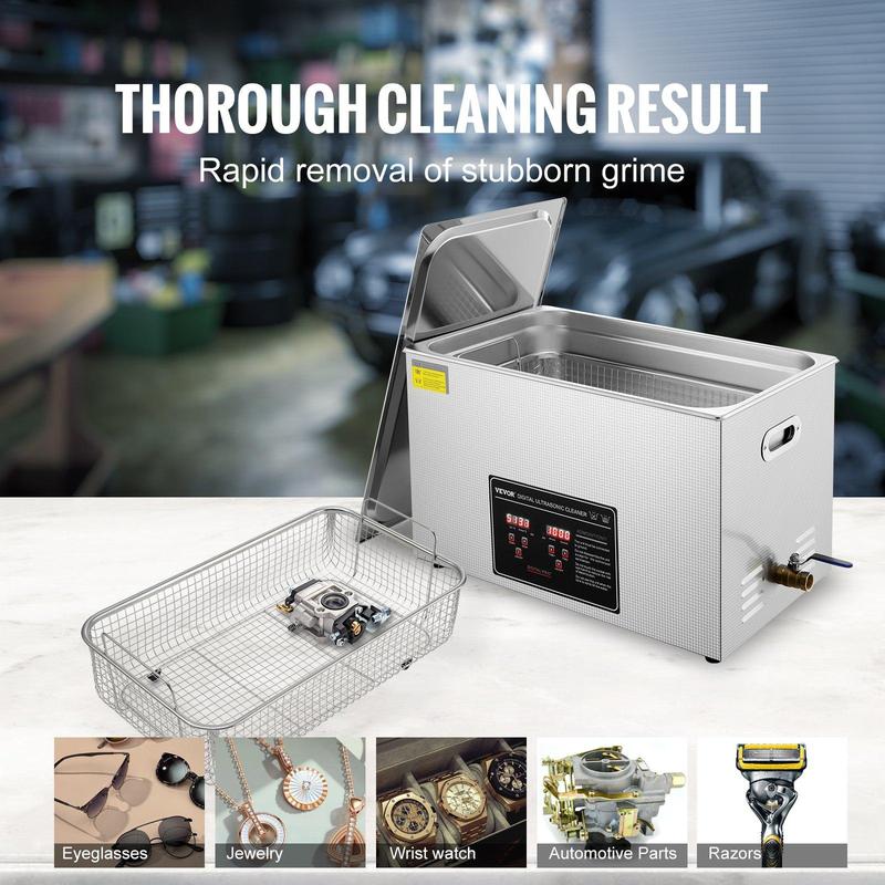·Versatile Applications: The VEVOR ultrasonic cleaner machine holds multiple certifications, ensuring reliability and making it suitable for a wide range of applications. From laboratories and carburetors to circuit boards, dental equipment, jewelry, eyeglasses, watches, and cutlery. Trust our product to provide professional-grade cleaning.