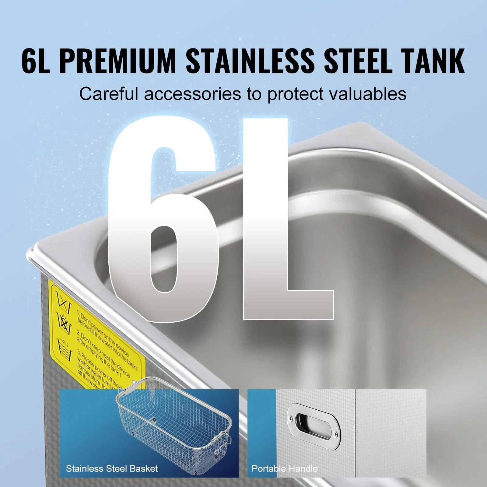 • Quality You Can Trust: Designed with a premium SUS304 stainless steel tank and basket, the 6L securely holds and cleans various valuable items like jewelry, eyeglasses, and watches. Attention to detail ensures that each item receives a meticulous cleaning.